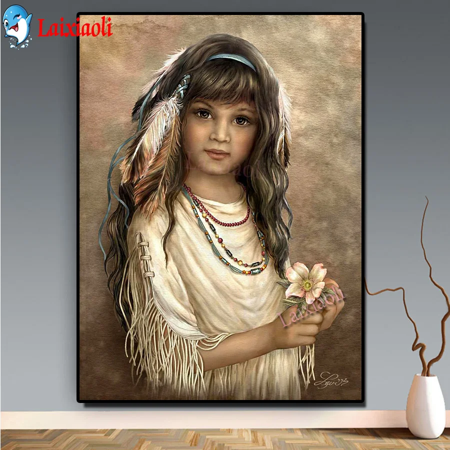 Милая девушка, полная квадратная круглая алмазная живопись, картины с маленькой индийской девушкой, вышивка, мозаика 5D, сделай сам, настенное искусство, Декор, новое поступление