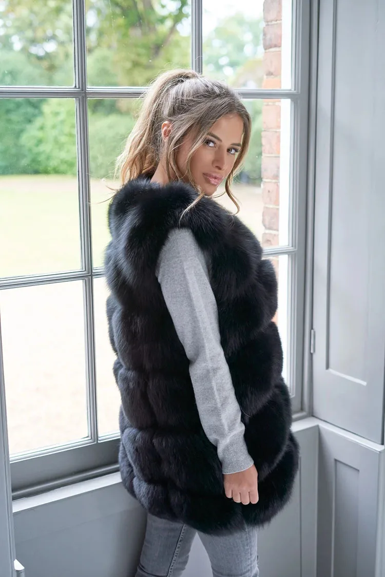 Жилет из искусственного меха, куртка с прострочкой, осенне-зимний жилет из лисьего меха, женское меховое пальто средней длины, Высококачественная верхняя одежда из Меха чернобурки