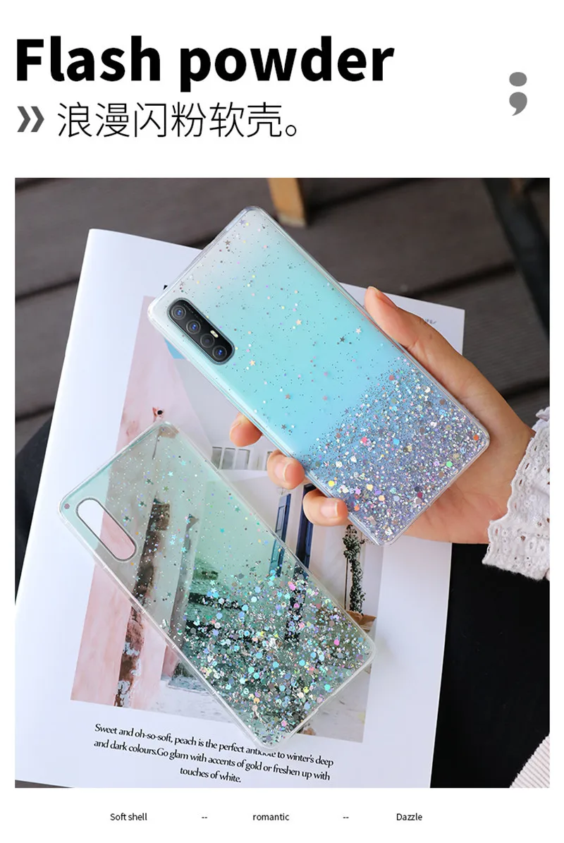 Чехол для OPPO A92, A92S, A52, A91, A9 2020, A83, A79, A73, A71, A59, A57, A1K, K5, K3, F11, F9, F7, прозрачный, с блестками