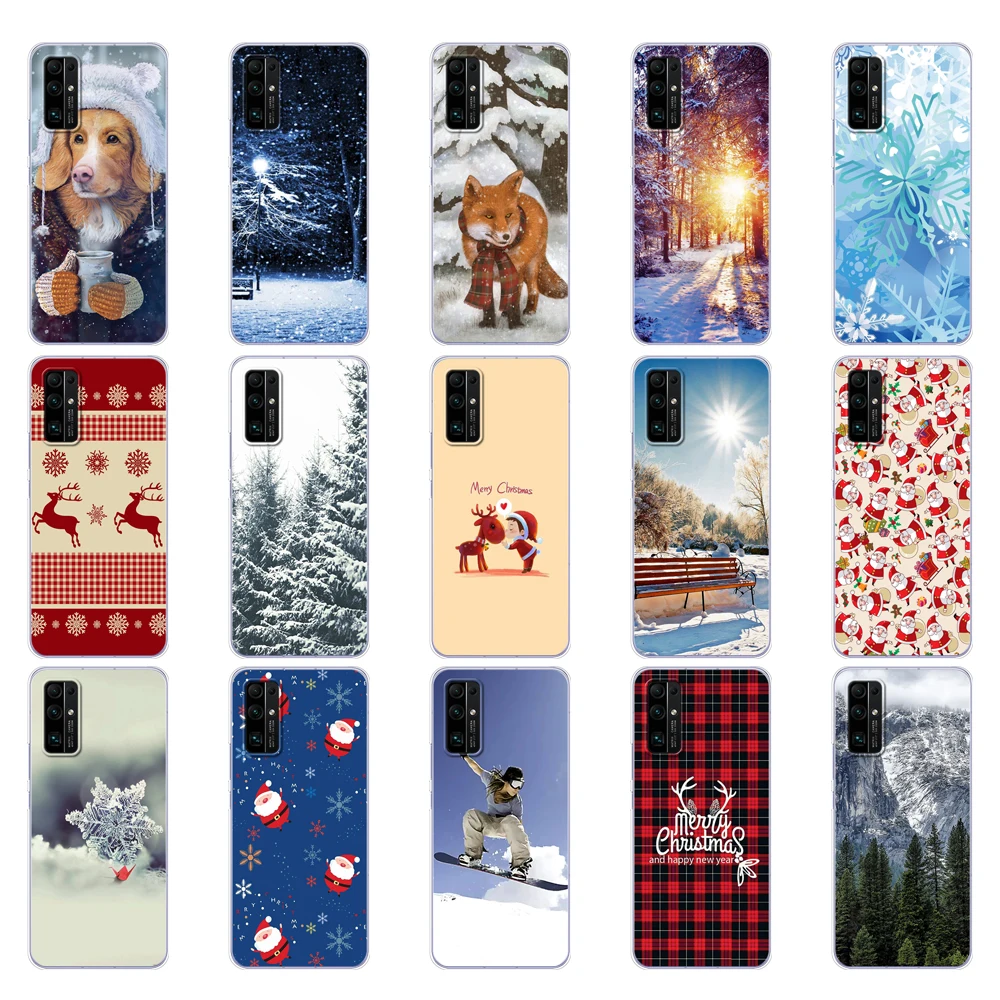 Чехол для HONOR 30, Мягкая силиконовая задняя крышка из ТПУ для Huawei Honor 30 Pro, чехол для телефона Honor30 Pro Plus, зимний, снежный, Рождественский, с новым годом