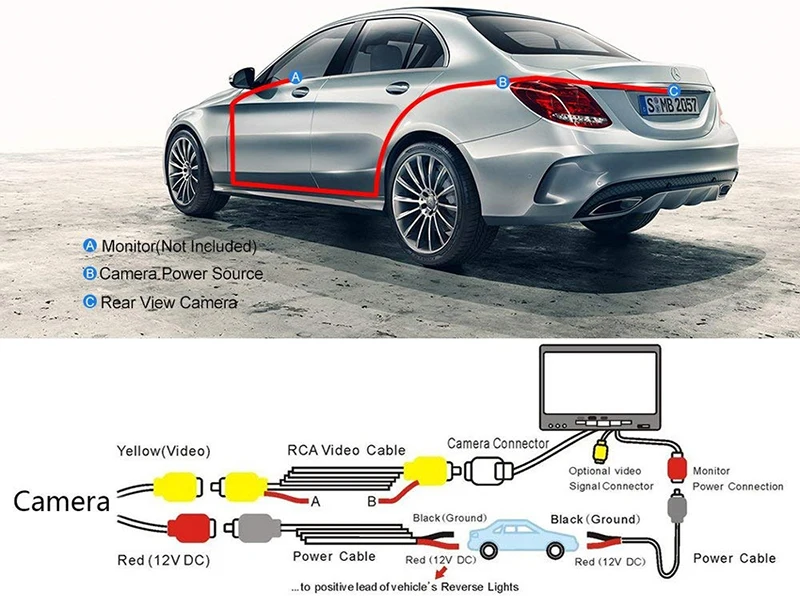 Советы: если монитор android dvd или стерео радио, вам нужен кабель 6 м красный триггер провод "A" и "B":"A" Подключите Обратный Свет питания постоянного тока 12 В +."B" Подключите к радио триггерному проводу.