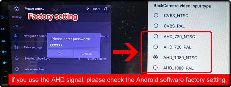 Внимание: согласно нашему опыту, некоторые дешевые головки Android имеют настройку программного обеспечения для AHD видеосигнала, но правда в том, что у них нет AHD чипов, поэтому не поддерживайте AHD 1080P. Если да, то Вы можете применить только видеосигнал CVBS. Мы рекомендуем купить камеру CVBS/AHD 720P. Это лучшая Совместимость для всех мониторов и android стерео-устройств.