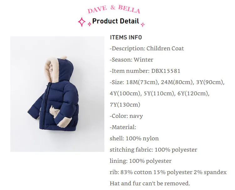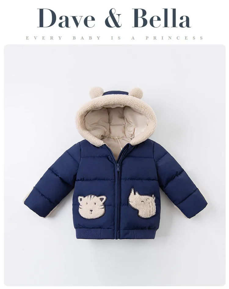 Пальто детское зимнее с капюшоном и надписью dave bella, DBX15581