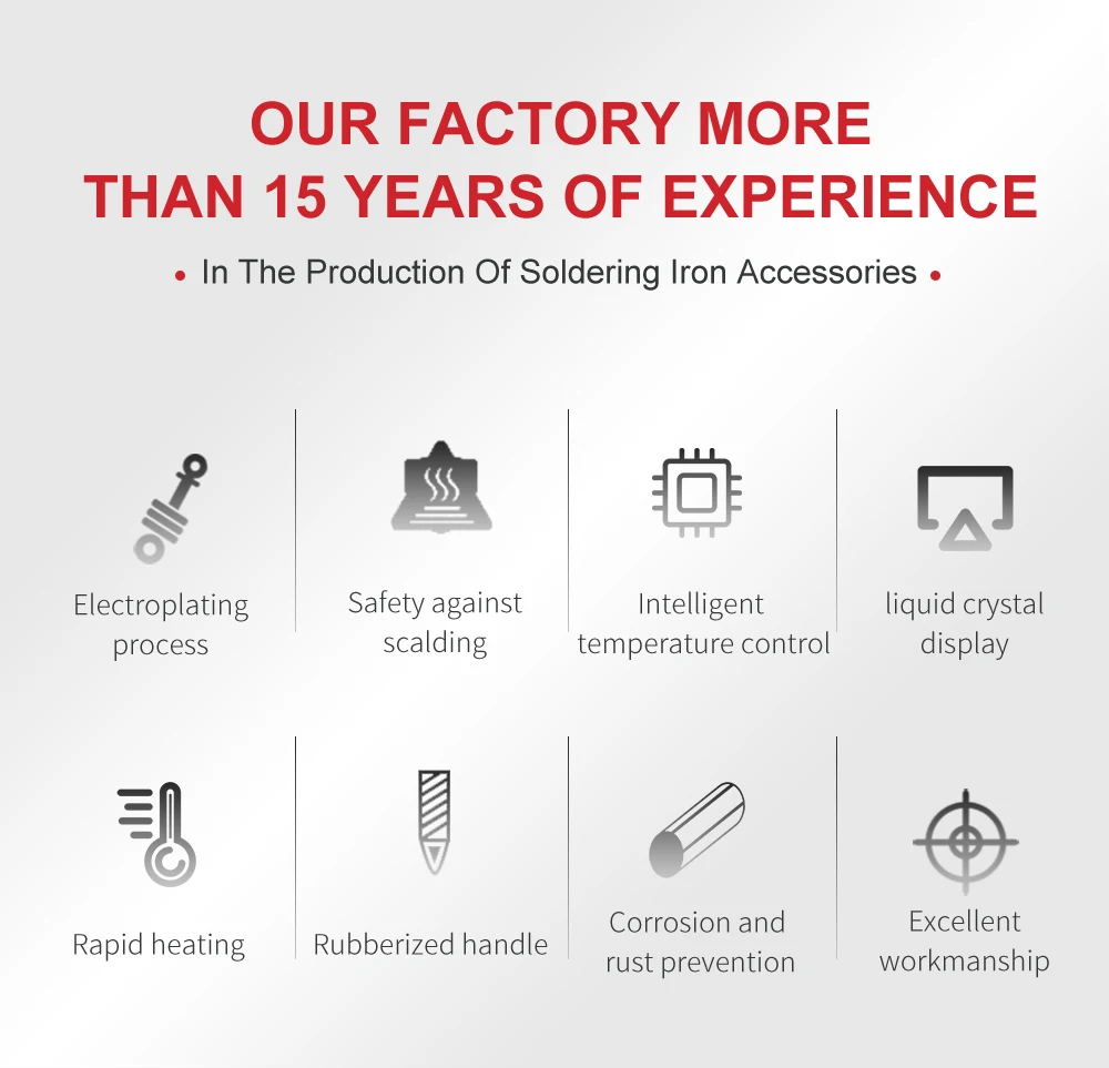 Режим регулирования температуры: диапазон температуры пайки s составляет 180-500 ℃, быстро нагревается, устойчивость к высоким температурам, может защитить ваши сварочные предметы, четкий ЖК-дисплей: ЖК-дисплей высокой четкости, который более четко указывает на состояние температуры
