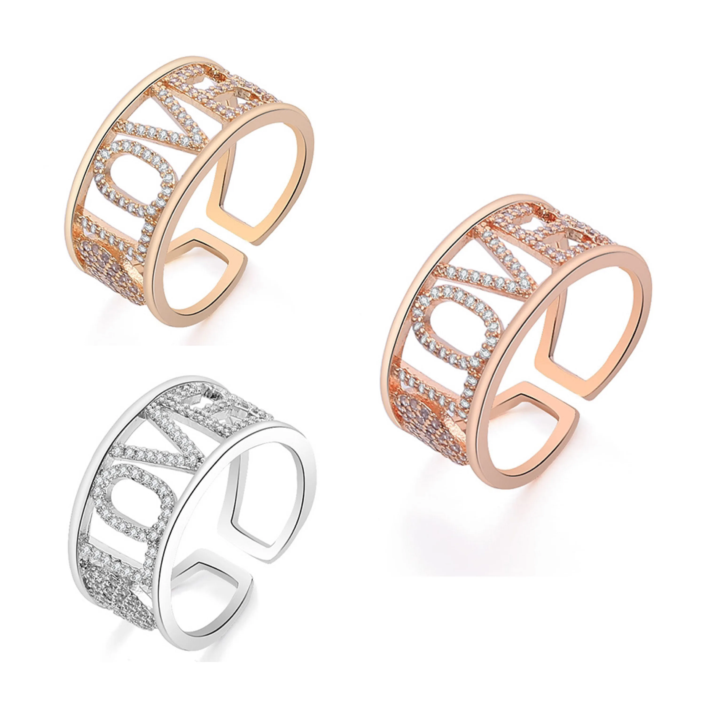 Женское кольцо с фианитом, регулируемое кольцо с буквами love, один...