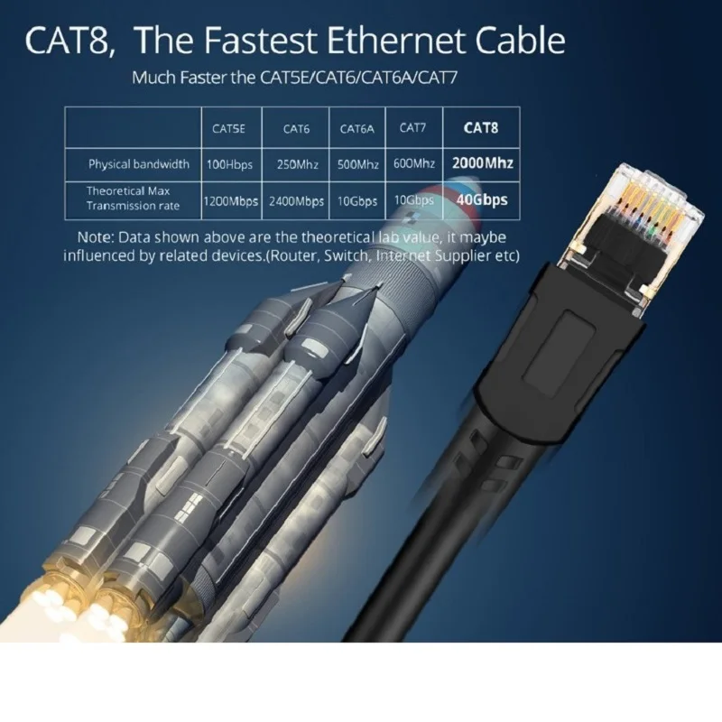 1) Высокая скорость передачи-кабель Ethernet CAT 8 поддерживает пропускную способность до 2000 МГц и скорость передачи до 40 Гбит/с. Этот кабель Ethernet отвечает требованиям к эффективности и не тратит время на ожидание. 2) штекер Rj45 и SSTP-этот интернет-кабель удобный и прочный с двумя позолоченными разъемами RJ45. Основной провод имеет двойную экранированную конструкцию с 4 парами фольгированной алюминиевой фольгой витой пары и большим экранирующим слоем из алюминиевой фольги. 3) подключи и работай-этот сетевой кабель легко подключать и переносить. И этот шнур Ethernet эффективно работает как на улице, так и в помещении. 4) стабильный и прочный-по сравнению с другими кабелями 32AWG, этот кабель Ethernet 28AWG Cat8 толще и прочнее CAT7, CAT6. Материал корпуса из ПВХ обертывает провод с сердечником из бескислородной меди, обеспечивает дистанционную передачу с низким сопротивлением. 5) диапазон применения-этот кабель Ethernet CAT 8 совместим с CAT 7, CAT 6, CAT 5. Кабель lan идеально подходит для сетевых адаптеров, концентраторов, маршрутизаторов, DSL, кабельных модемов, POE, PS3, PS4, X-box, патч-панелей и других высокопроизводительных сетевых приложений.