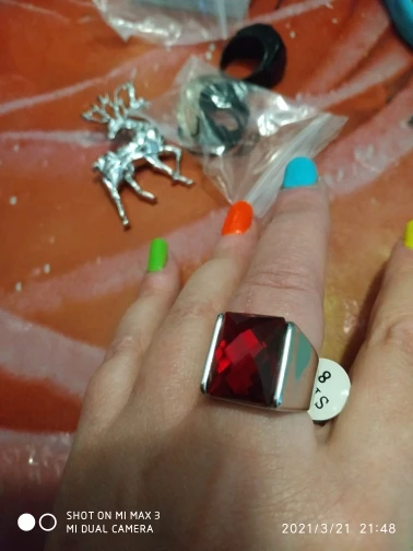 К сожалению размер намного меньше обычного, стандартного 8 номера. Посылка пришла за несколько дней, очень круто. Но, кольца не подошли. Для сравнения сфотографировала красное, где размер соответствует 8