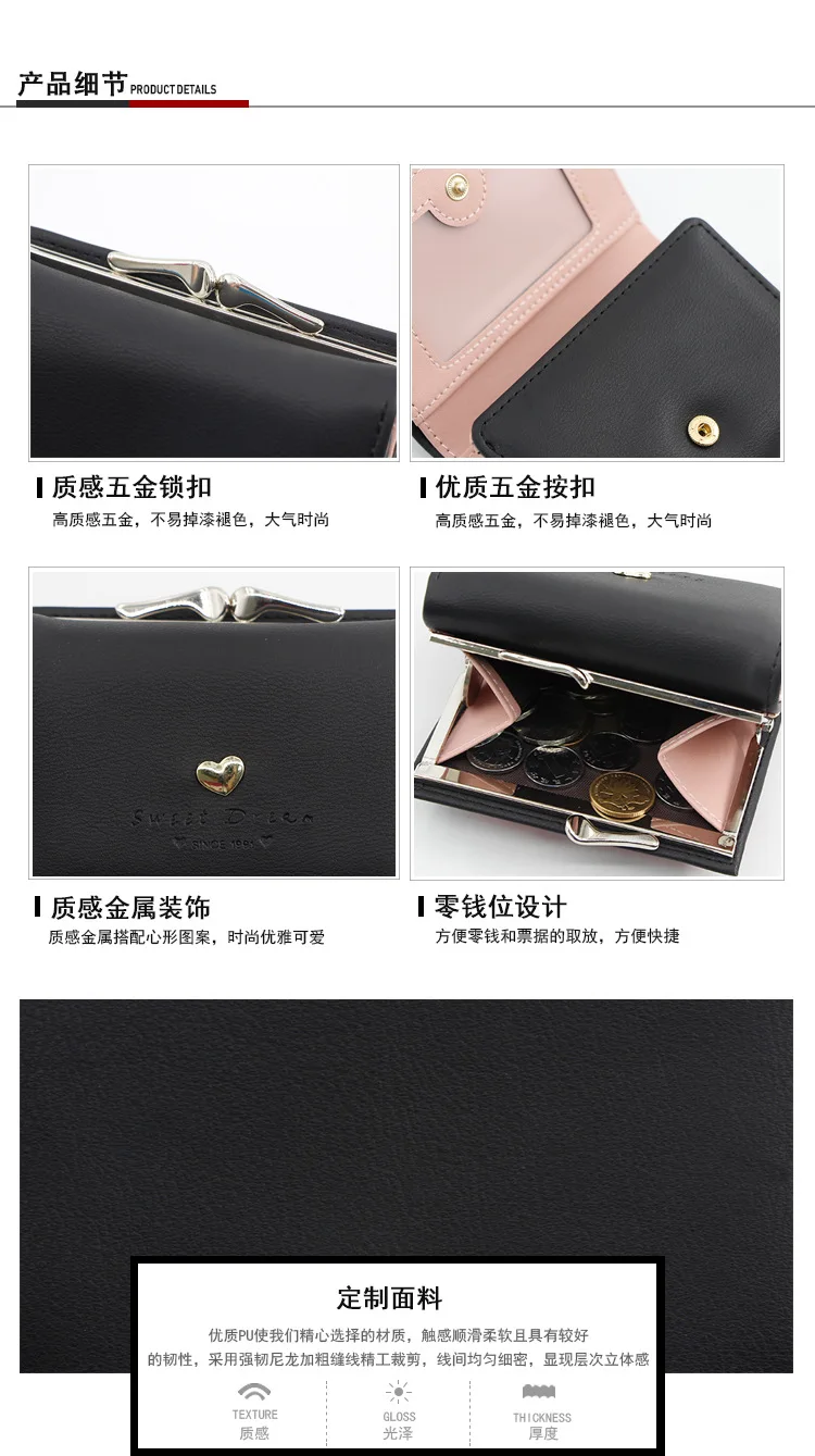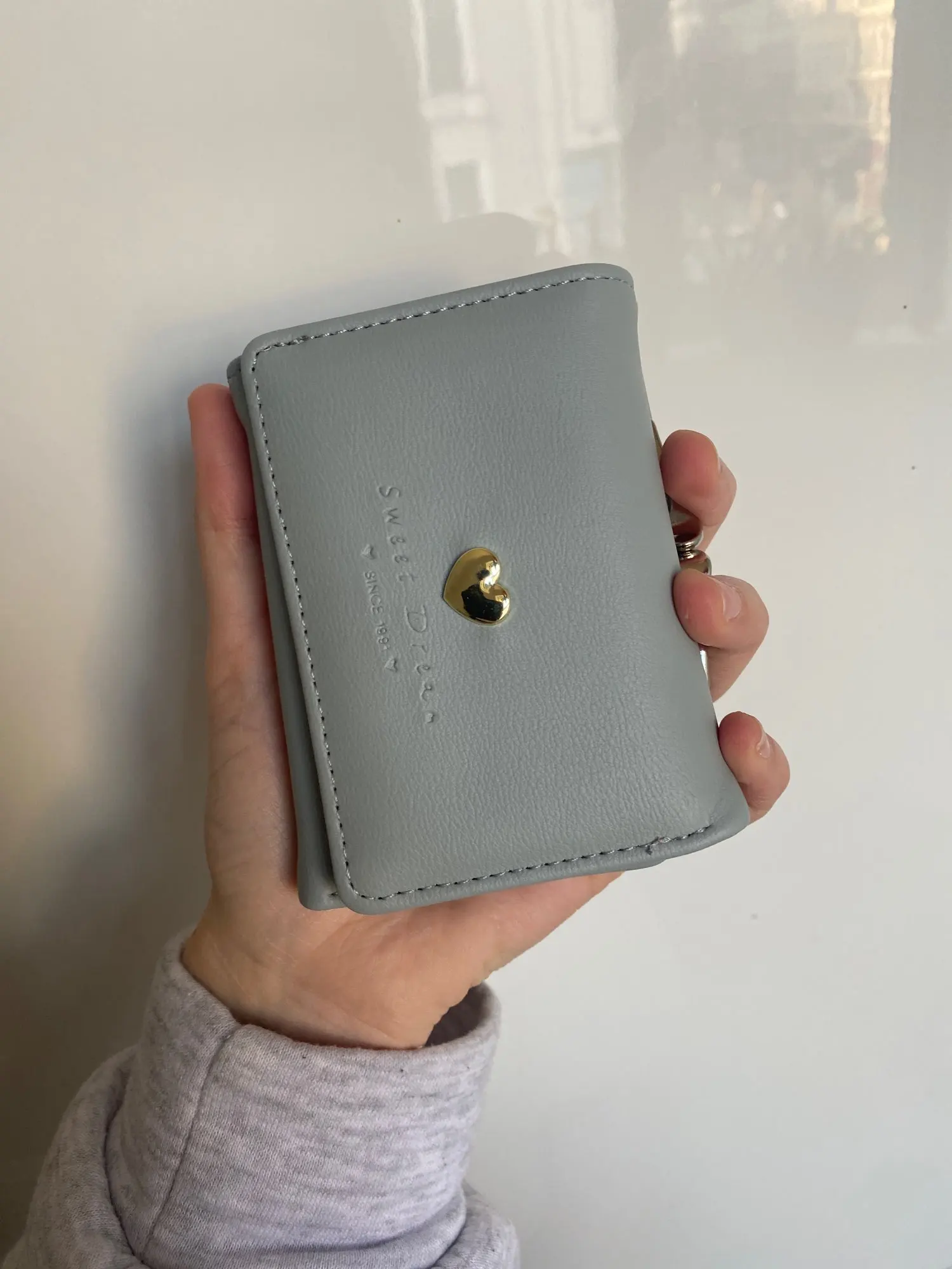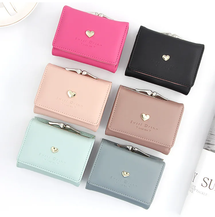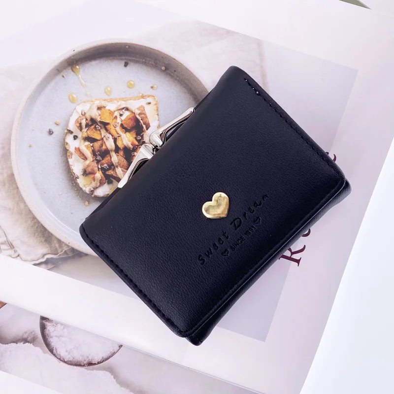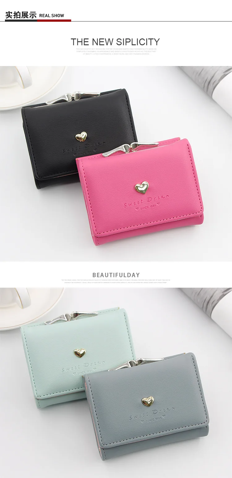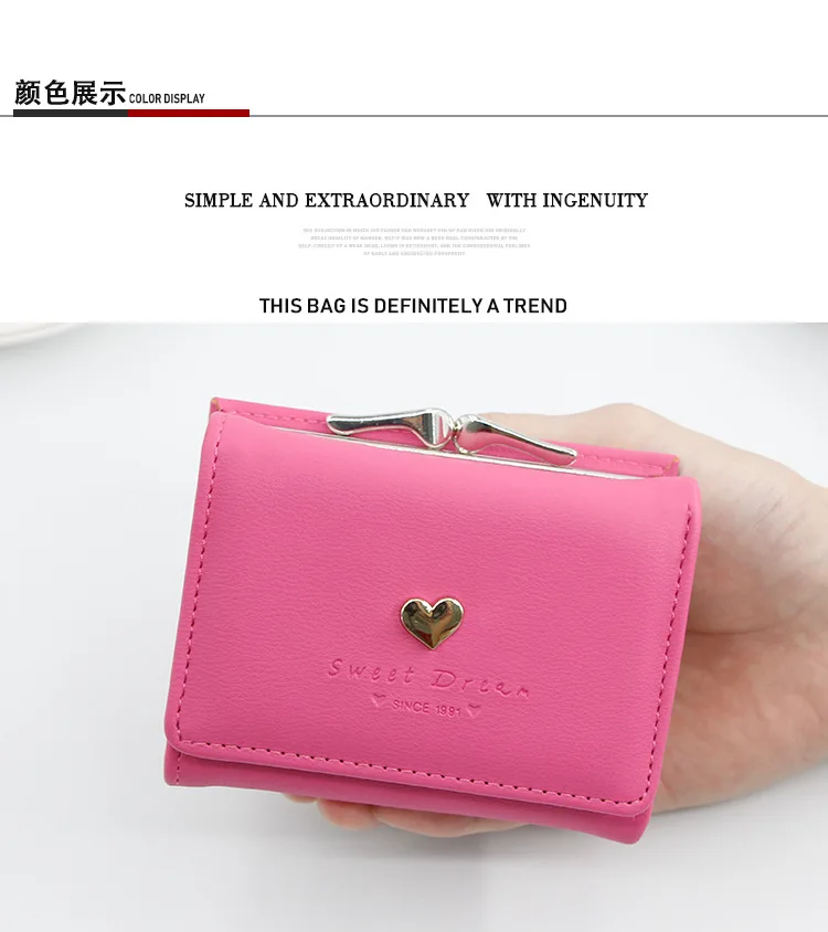 Кошелек женский кожаный, однотонный, с застежкой в виде сердца