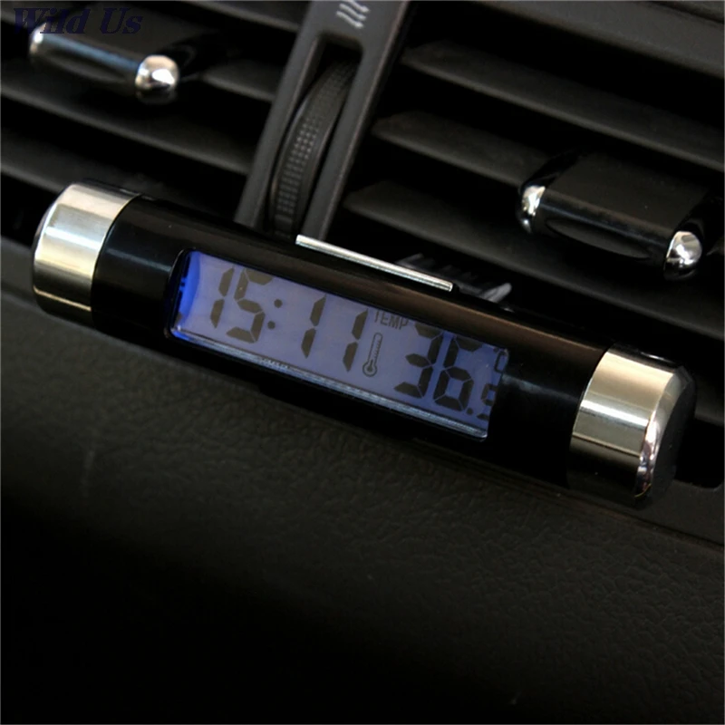 Автомобильные часы 2 в 1, термометр, ЖК-дисплей, Синяя подсветка автомобиля, автомобильный термометр, часы, календарь с зажимом