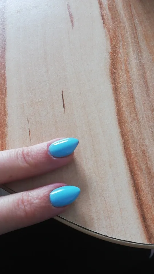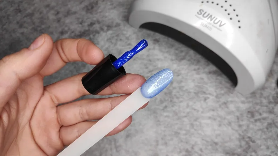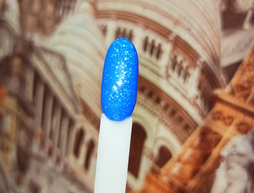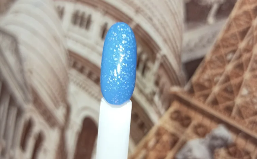 лак красивый, в холоде синий, в тепле светло голубой, цвета как на фото