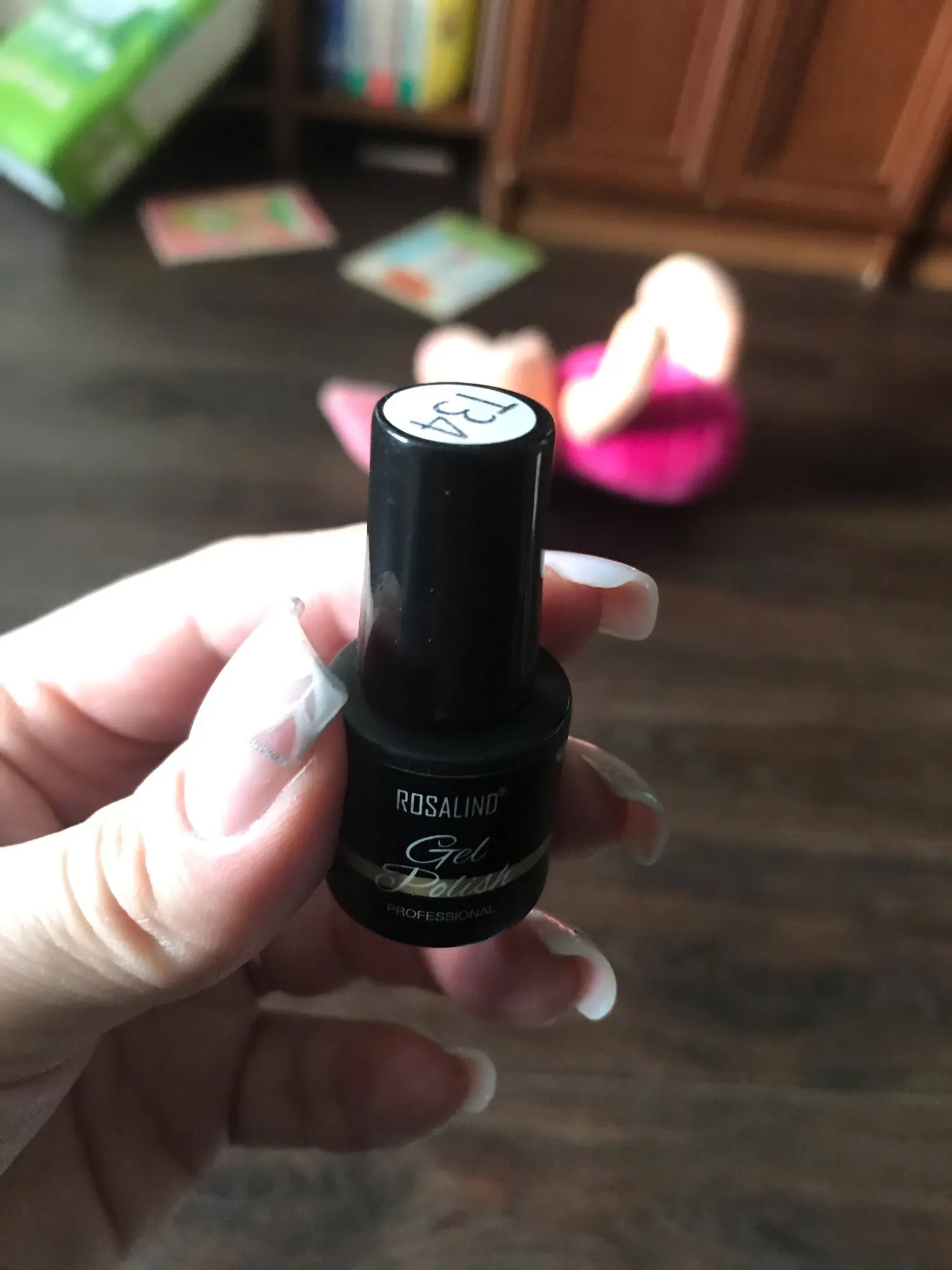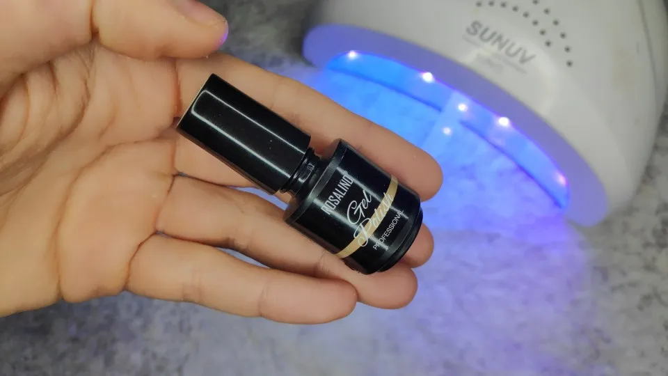 Очень маленький, но цвет очень приятный. Единственный минус его нужно сушить под лампой, а брала его для домашнего использования. Для профессионалов самое то.