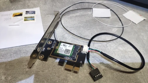 Получил. Доставка быстрая. Модуля АХ210 так и не дождался (заказывал на ebay с Канады). В итоге перезаказал у этого же продавца. В комплект заказал провода для скрытой проводки антен в корпусе под пластиком за металлом (роутер через комнату перед компом и лишние потеря сигнала из-за расположения антенн сзади мне не нужна). Как все придет, буду проверять работоспособность и допишу отзыв. На первый взгляд качество хорошее. Провод для подключения к USB в комплекте (видимо для Bluetooth), как и антенны пластиковые.