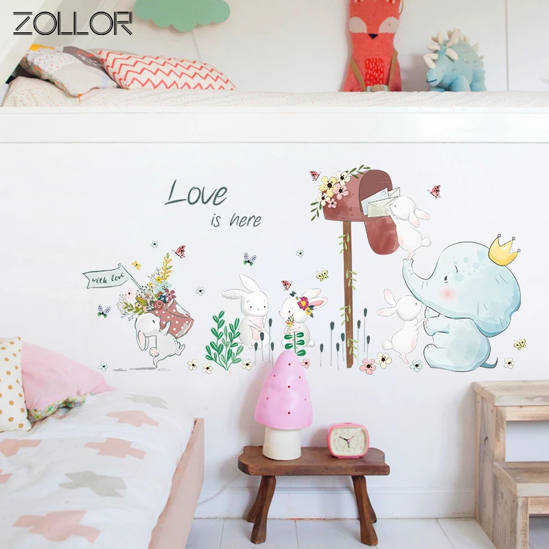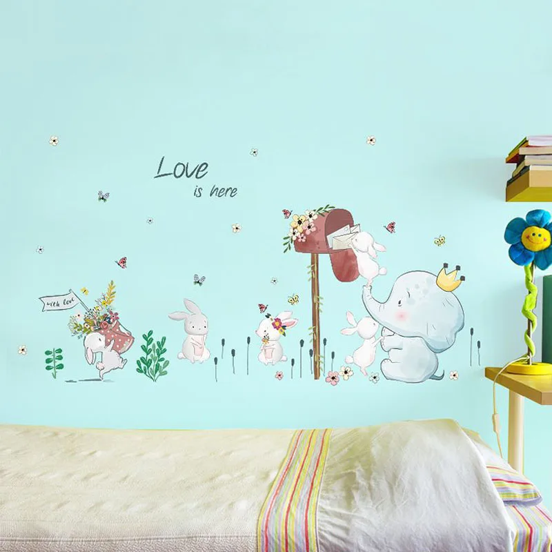 Милые кролики, почтовый ящик, наклейка на стену для детской комнаты, мультяшный фон для дома, настенные наклейки, съемные обои