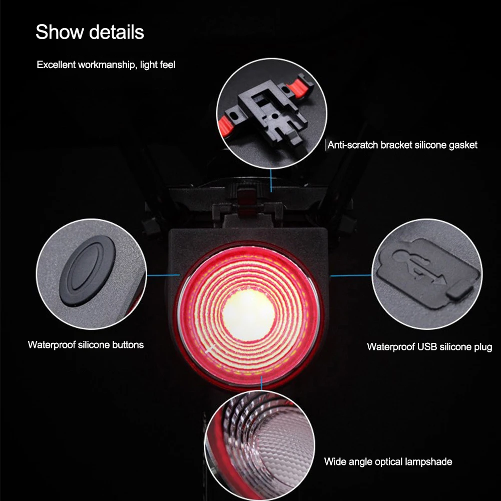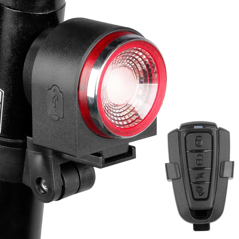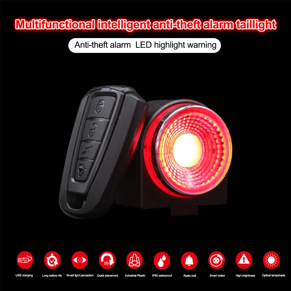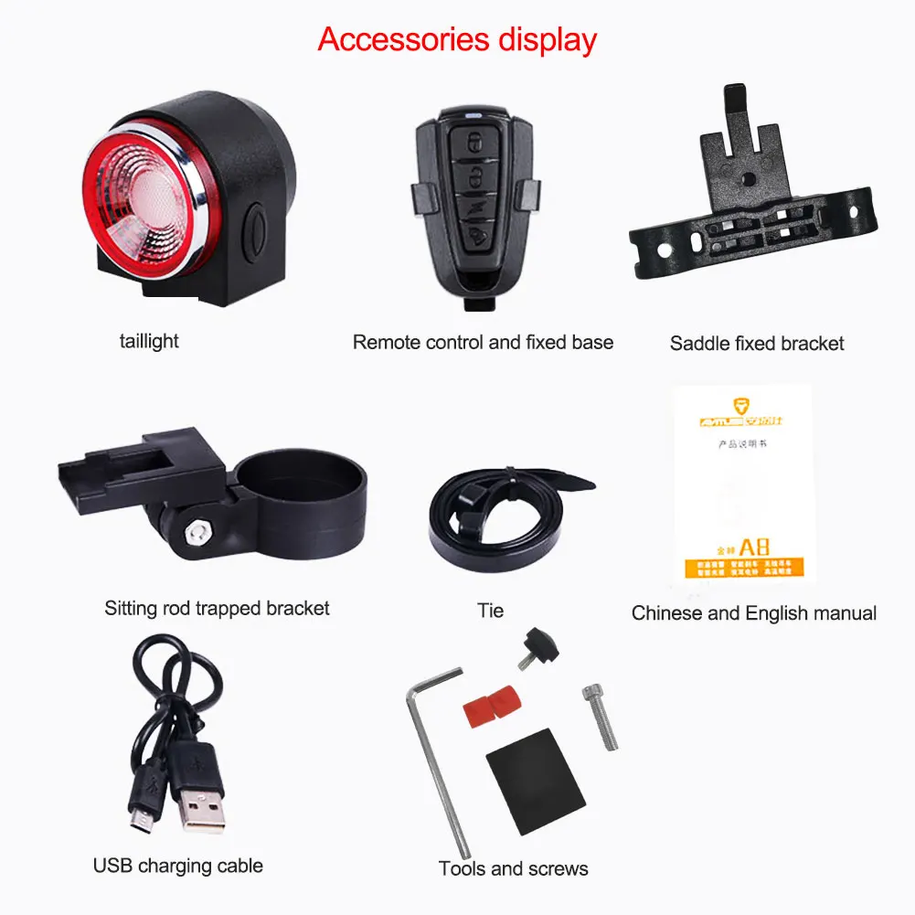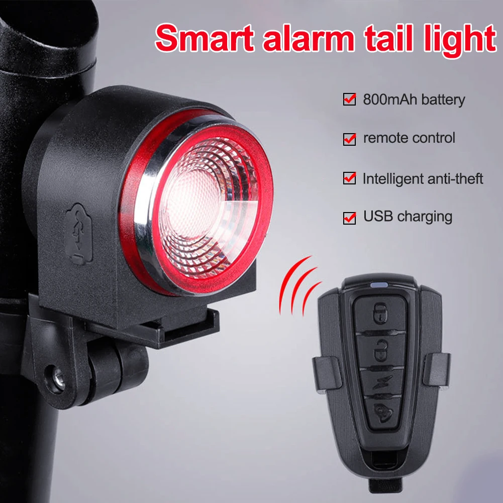 Светодиодный задний фонарь для велосипеда, с зарядкой от USB, с автоматическим обнаружением тормоза, беспроводной пульт дистанционного управления, велосипедный задний фонарь, сигнал тревоги