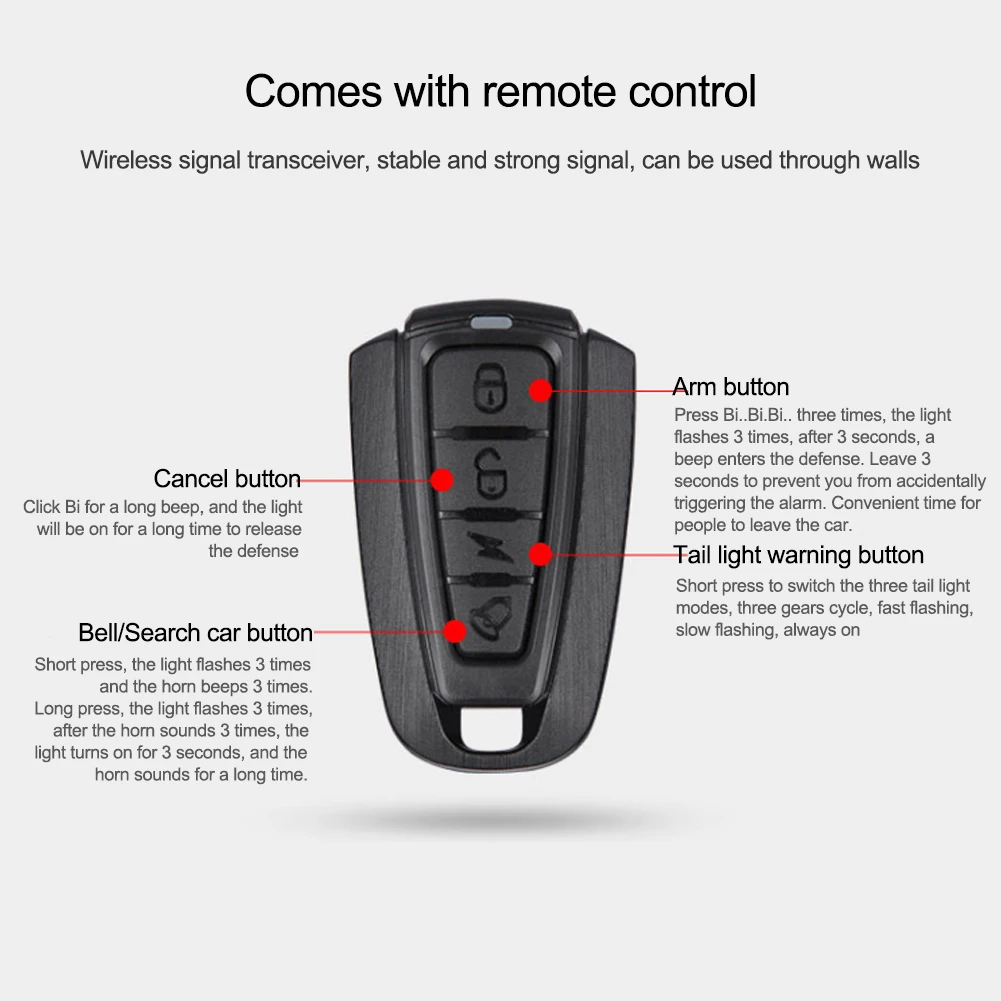 -Функция: заднее визуальное предупреждение, звонок, сигнализация от взлома, удаленный вызов;