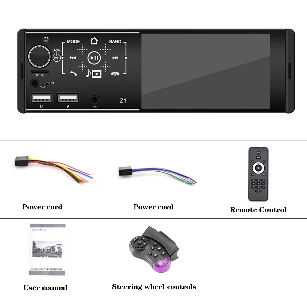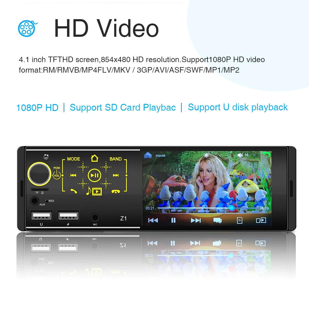 Особенности:1. Семь цветов подсветки: поддержка семи цветов подсветки, вы можете выбрать семь цветов в качестве подсветки2.Bluetooth может работать с большинством устройств, подключайте телефон, чтобы держать руки свободными, когда приближается вызов, кроме того, вы даже экономите сумму денег, чтобы купить бизнес-наушники3. Функция заднего вида: Поддержка входа камеры заднего вида, вы можете увидеть видео на экране MP5, хотя камера заднего вида, при поддержке вашего автомобиля4. Пульт дистанционного управления: Поддержка дистанционного управления, вы можете управлять устройством с помощью пульта дистанционного управления, запуск/остановка/следующая/последняя музыка или фильм, радио, включение/выключение устройства5. Функция отключения памяти, звуковое состояние музыки или музыки во время отключения памяти6. Функция USB: Поддержка большой памяти USB (u-диск), вы можете скачать музыку или фильмы, которые вам нравятся, играть на этом устройстве7. Функция FM AM: fm-радио с высококачественной стереосистемой, которая может осуществлять поиск каналов полностью автоматическим способом, полуавтоматическим способом и адаптером8. Управление рулевым колесом: быстрое переключение функций, которые вы хотите с рулем вашего автомобиля9. Поддержка USB зарядки телефона: не беспокойтесь о том, что ваш телефон не работает снова10. Воспроизведение u-диска/AUX: поддержка u-диска для воспроизведения, вам нужно только вставить u-диск в интерфейс машины для воспроизведения музыки, Поддержка внешнего входа AUX (plug)11. Высококачественное цифровое стерео fm-радио, автоматический режим поиска каналов, полуавтоматический и точный метод регулировки. Слушайте музыку, новости и информацию о дорожном движении, где угодно и наслаждайтесь12. Функция часов и функция отключения звука, выбор различных эквалайзеров звуковых эффектов13. Вход переднего микрофона, выход сабвуфера14. Зеркальная связь: Iphone может быть проецирован через USB кабель и Android может быть проецирован через USB кабель и может управляться на экране MP5 плеера и мобильный телефон. Особенности Система: WINCEЧип процессора: C200sЧип усилителя мощности: 7388Напряжение: 12 В постоянного токаЭкран: 4,1 "емкостный сенсорный экран ЭкранРазрешение экрана: 845*480Зеркальная связь: ПоддержкаGPS: не поддерживаетWIFI: не поддерживаетУсилитель на полевых МОП-транзисторах: 60 Вт x 4 Максимальная выходная мощностьРадио диапазон: FMTf-карта: ПоддержкаRDS: ПоддержкаOBD: не поддерживаетВерсия USB: 2,0Изменение логотипа автомобиля: ПоддержкаСопротивление динамика: 4 ОмРазъем питания ISOДва usb-порта (одна воспроизведение музыки, одна поддержка быстрой зарядки телефона)Диапазон настройки FM: 87,5 ~ 108,0 МГц (ЕС), 87,5 ~ 107,9 МГц (США), 65,0 ~ 74,0 МГц (RU), 76,0 ~ 90,0 МГц (JP)Диапазон настройки AM: 522 ~ 1620 кГц (ЕС),530 ~ 1620 кГц (США),522 ~ 1620 кГц (RU),522 ~ 1629 кГц (JP)Формат изображения: JPGПоддержка формата воспроизведения аудио MP3/WMA/WAV/FLAC/APP и т. Д.Поддержка формата воспроизведения видео RMVB/RM/VOB/DIVX/AVI /ASF/3GP и т. Д.Язык OSD: английский, китайский, испанский, португальский, русский, итальянский, немецкий, французский, польский, турецкий, чешский Товар входит в комплект1 х Автомобильный MP5 плеер1 х Кабель питания1 пульт дистанционного управления1 x Руководство пользователя1 х управление рулевым колесом Часто задаваемые вопросы: 1. Почему нельзя включить автомобильное радио? 1,1 пожалуйста, проверьте напряжение автомоби