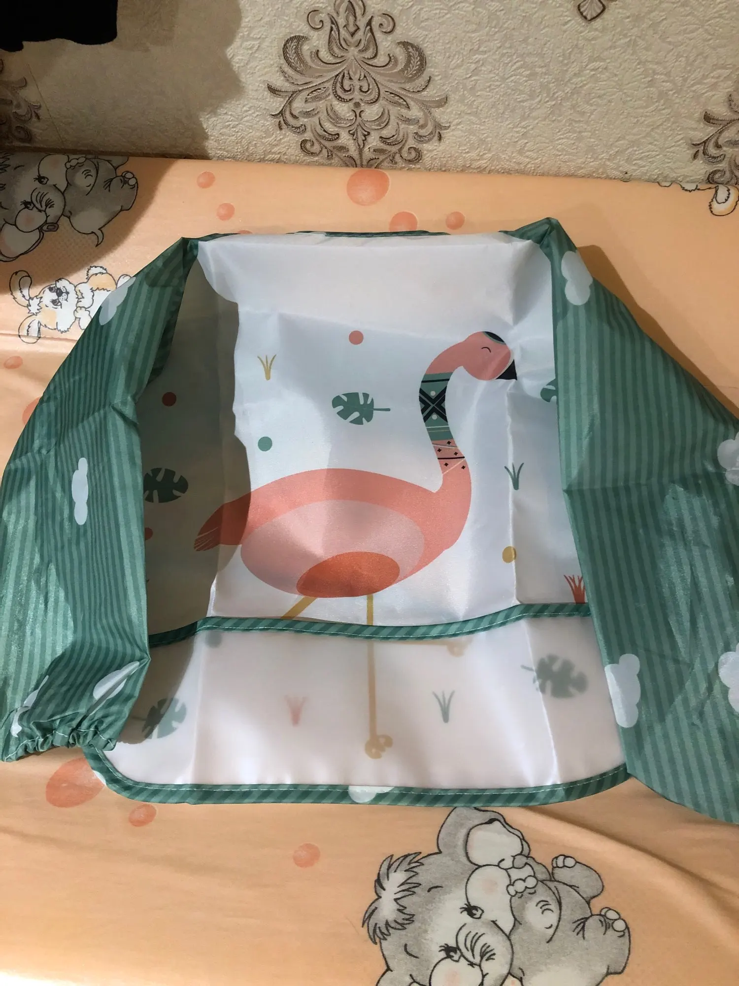 Хороший фартук , правда большой для 6 месячного, подойдёт наверное в год. Но ничего рукава можно подвернуть а то что длинный это даже хорошо, одежду снизу меньше пачкать будет. Сзади завязывается и липучки. Шел 14 дней. С продавцом не общалась. Советую