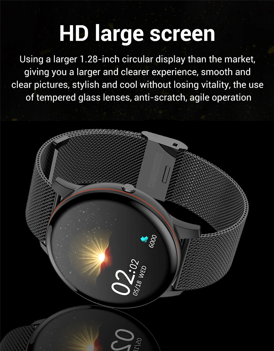 Смарт-часы со стальным браслетом, водонепроницаемые спортивные фитн...