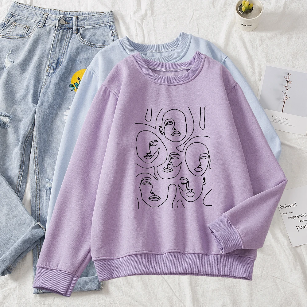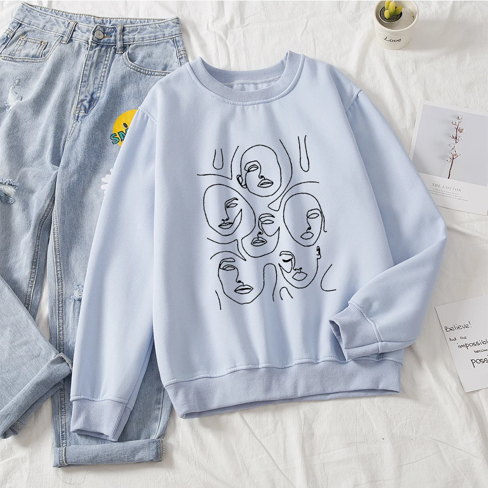 Зимняя женская толстовка Skuggnas, с абстрактным изображением линий лица, винтажный пуловер, в стиле Харадзюку, в готическом стиле