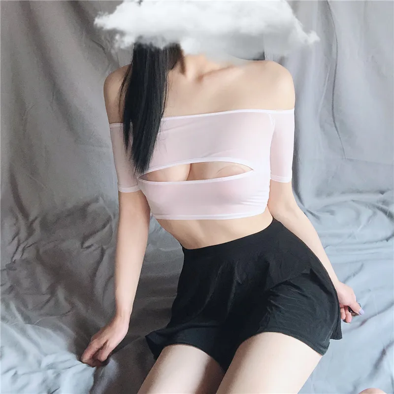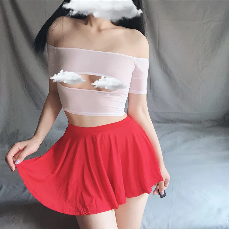Женский комплект из прозрачной Футболки с вырезом лодочкой и мини-юбки со складками