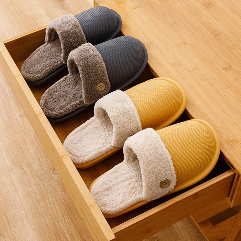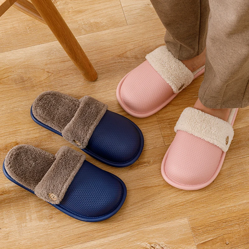 Мужские зимние теплые осенние тапочки для мужчин Домашняя мужская повседневная обувь женские водонепроницаемые меховые мужские тапочки для дома 36 45