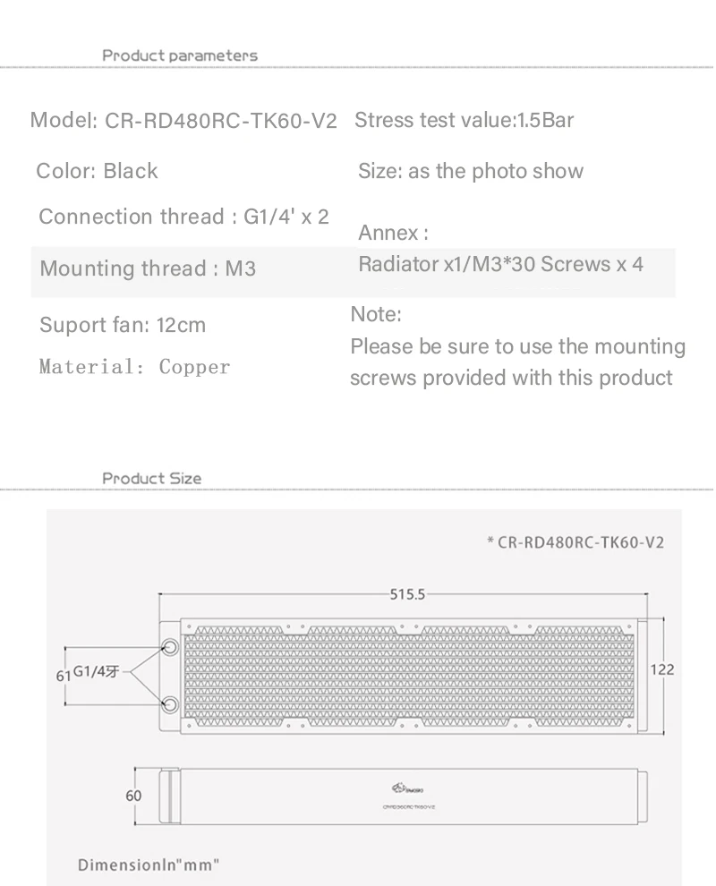 Медный радиатор BYKSKI 480 мм для охлаждения ПК, толщина 60 мм для ...