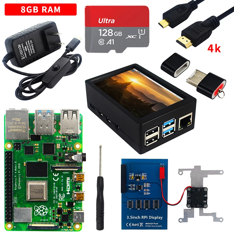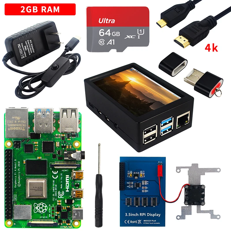 Комплект Raspberry Pi 4 Model B, 2 ГБ, 4 ГБ, 8 ГБ ОЗУ, карта памяти, чехол, охлаждающий вентилятор, видеокабель 4K HD, блок питания для Raspberry Pi 4 B