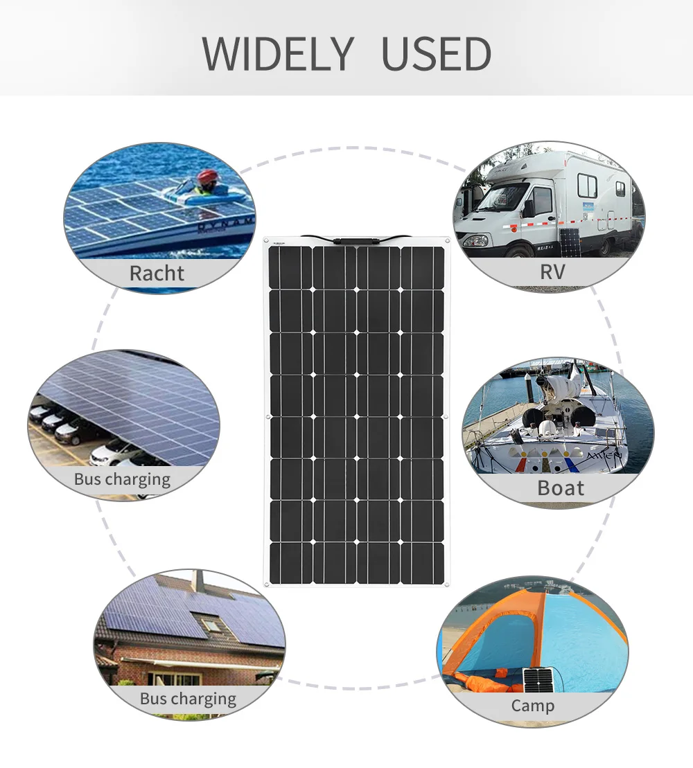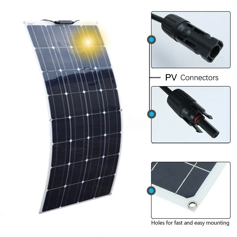 Гибкая солнечная панель, 100 Вт, 120 Вт, монокристаллическое зарядное устройство для аккумуляторов 12 В, для автомобиля, лодки, дома, RV, 32 ячейки, водонепроницаемая солнечная энергия