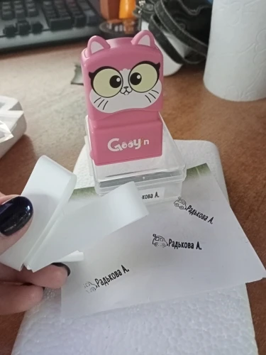 замечательное решение для детского сада. Штамп аккуратный, имя правильное, продавец ответил быстро. Понравилась и упаковка посылки и коробочка для хранения. Приятный бонус - небольшая ленточка термоклеяшейся белой бумаги подходящей, например, для темных тканей, потому что печать черного цвета. Рекомендую, как оптимальное экономичное решение