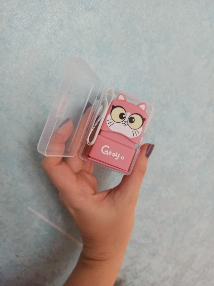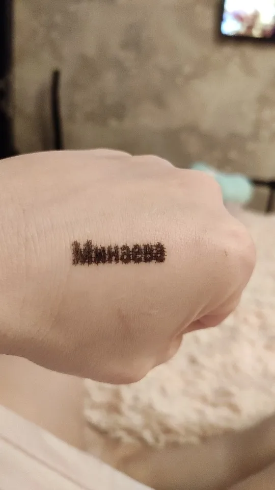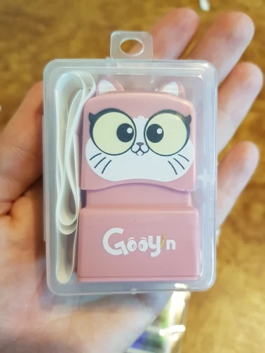 В принципе хорошая вещь. есть недочёты, но за такую цену в принципе нормально. Подпись, как и заявлено, небольшая и компактная. оттиск на ровной поверхности получается хороший, если резинка на ткани или ещё какие шероховатости, то надпись немного "плывет", с ткани не стирается, с мебели стирается плохо, с ламинированных поверхностей очень хорошо. На печатных изданиях тоже хорошо ставится и держится. Как я поняла лучше заказывать минималистический дизайн, без картинок, только надпись, тогда она будет более читаемая. В принципе рекомендую. Сам штампик со стороны рабочей части закрывается, чтобы не испачкаться и все это складывается в футляр. второе фото на трусиках (после стирки).