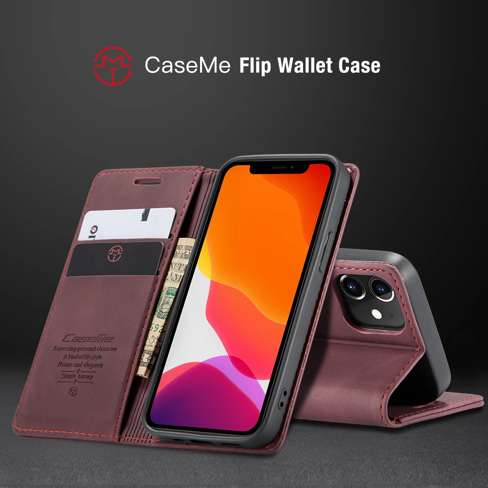 CaseMe флип-чехол для iPhone 13 12 Mini Pro Max ретро кожаный бумаж...