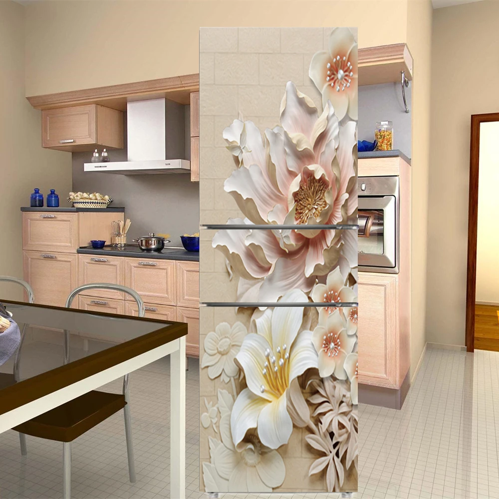 Элегантные цветы белые цветы наклейки на стену двери холодильника самоклеющиеся виниловые обои роспись искусство наклейка на холодильник