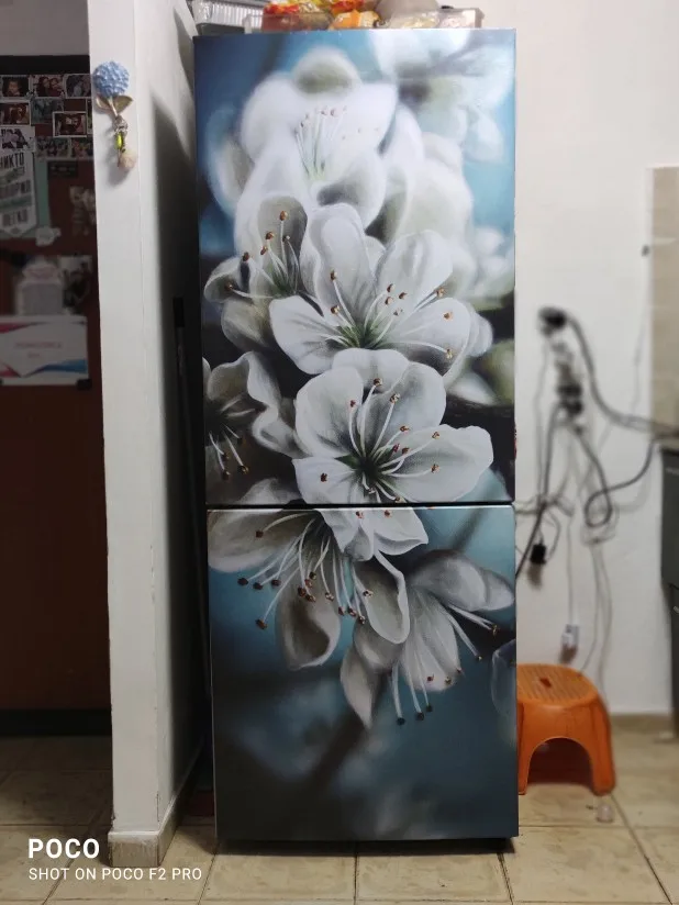 Доставка до Рязани 10 дней, трек код отслеживался. Упакована в жёсткий тубус. Очень хорошо, ничего не помялось. За это отдельное спасибо продавцу. Наклейки на холодильник не резанная, целиком одно полотно. Есть инструкция. После поклейки дополню отзыв. Рекомендую товар и продавца.