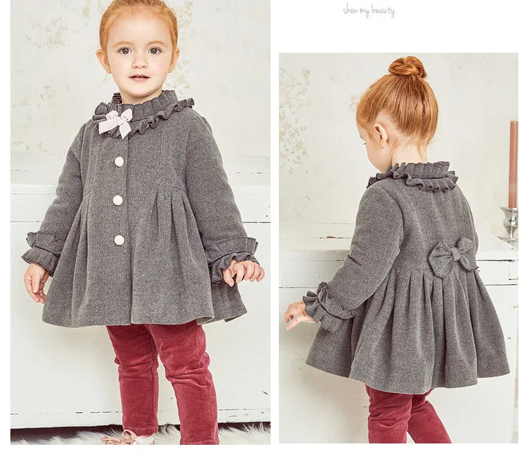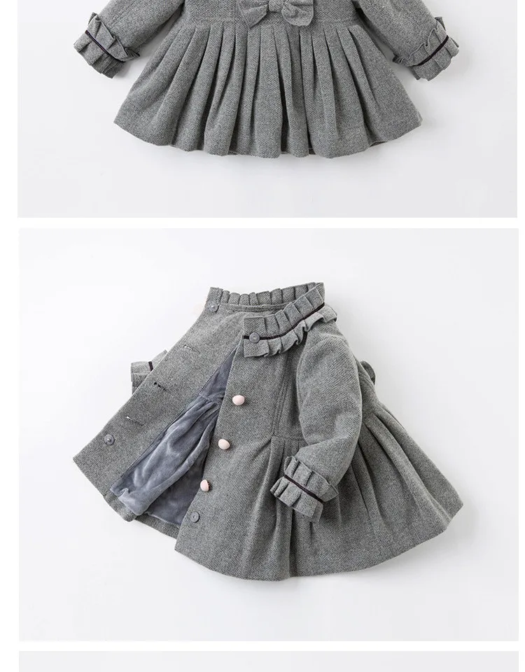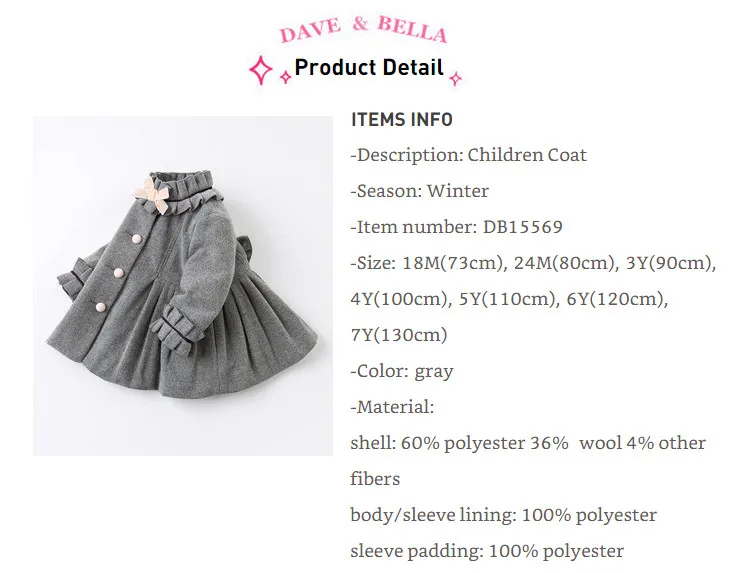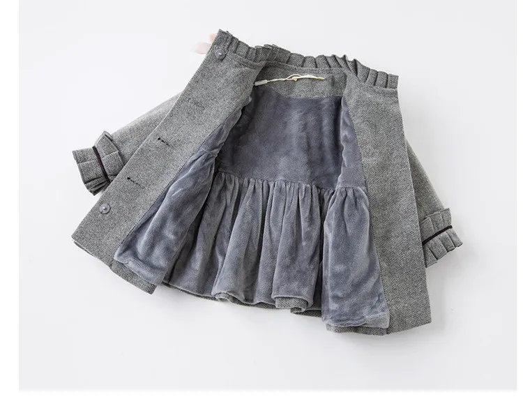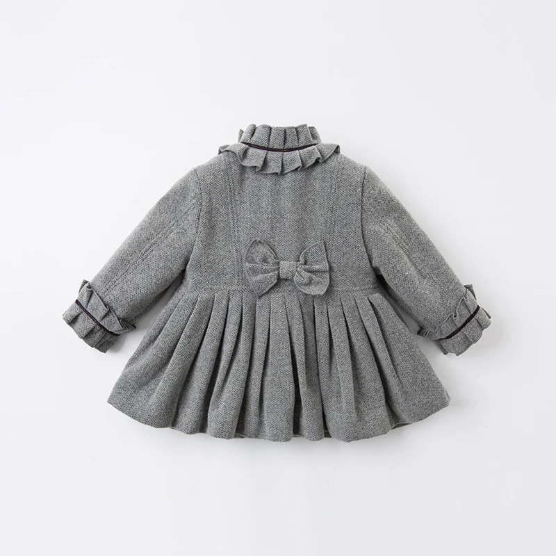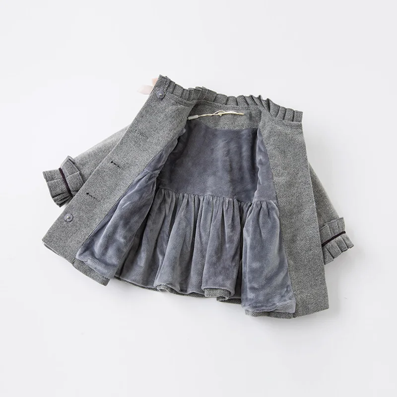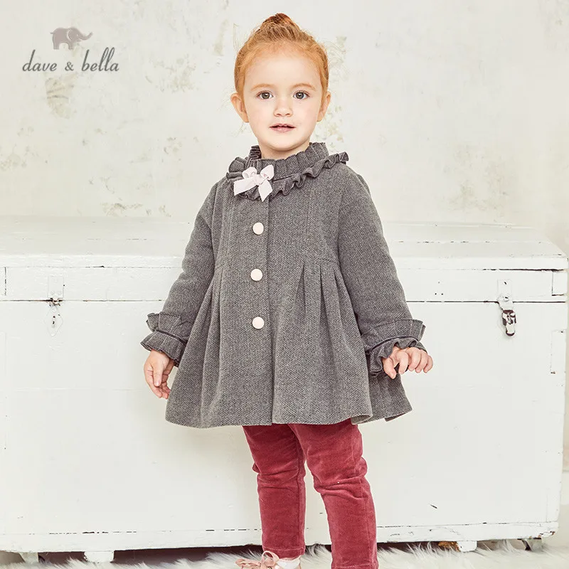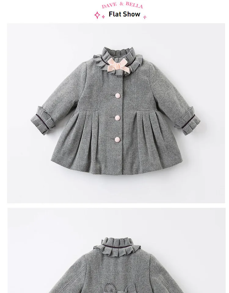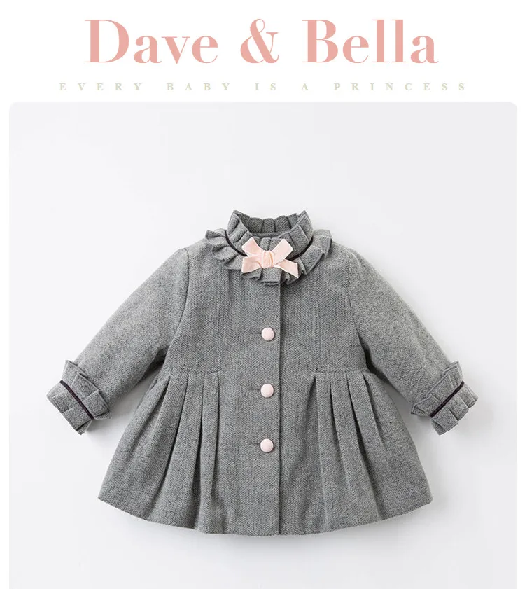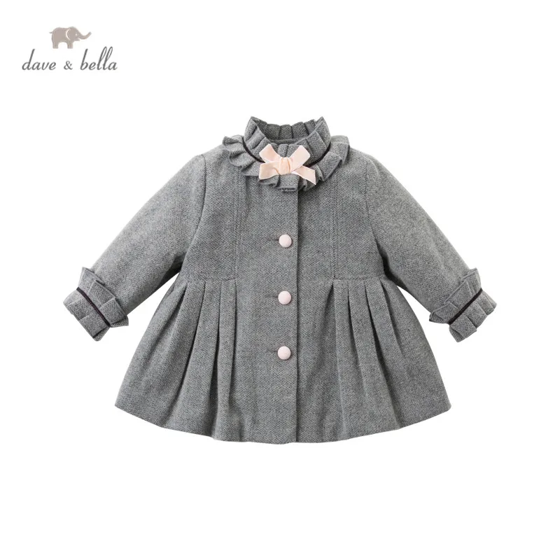 DB15569 dave bellaзимнее модное ДРАПИРОВАННОЕ пальто с бантом на пуговицах для маленьких девочек детские топы, верхняя одежда для малышей
