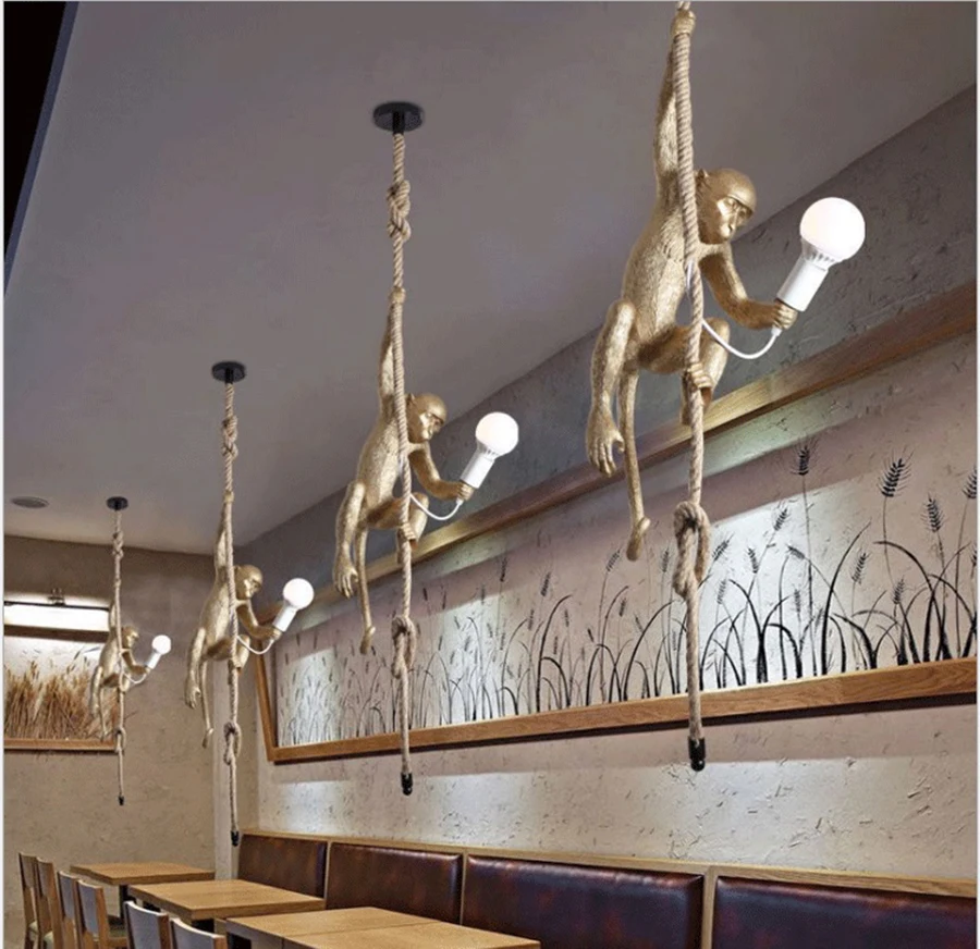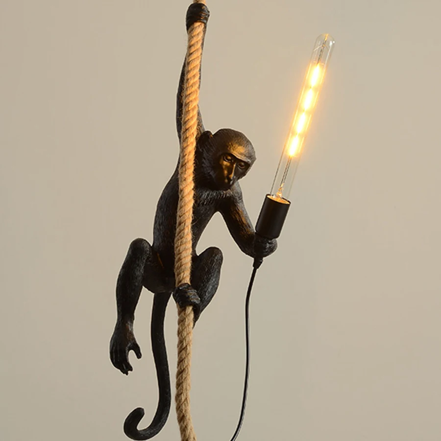 Лампа в форме обезьяны Seletti из смолы, черная, золотая, белая дизайнерская лампа в форме мыши, декоративный светильник в стиле индастрии, винтажная веревочная Подвесная лампа в стиле лофт, светодиодная лампа с животными