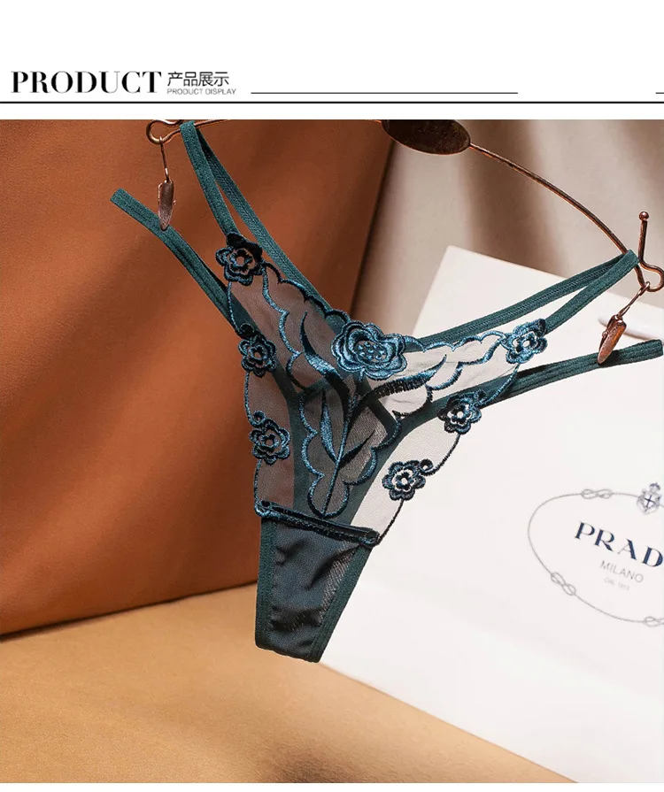 Сексуальные кружевные вышитые женские трусики, прозрачные стринги, ...