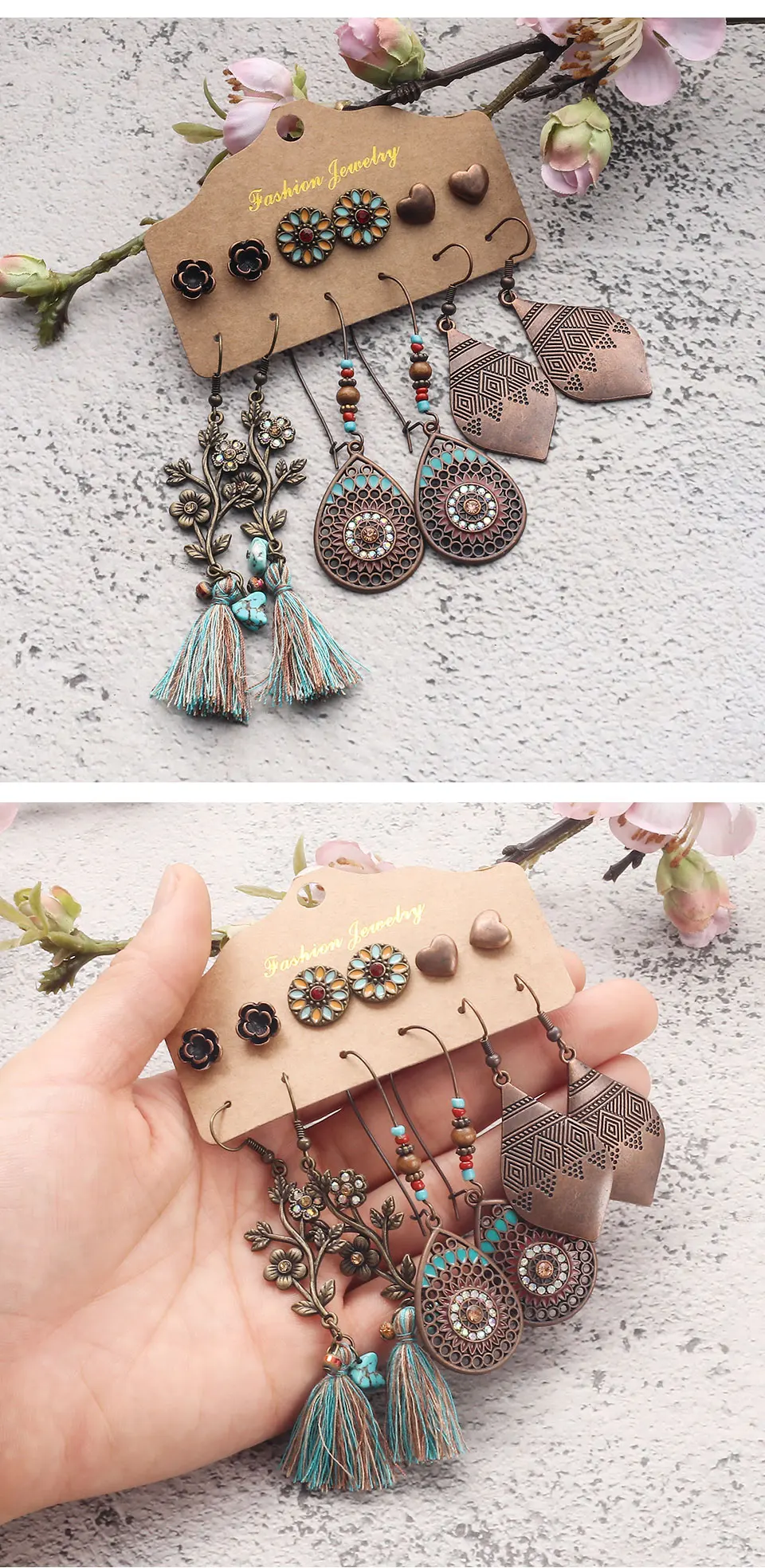 Комплекты винтажных этнических серег в стиле бохо женские, серьги-п...