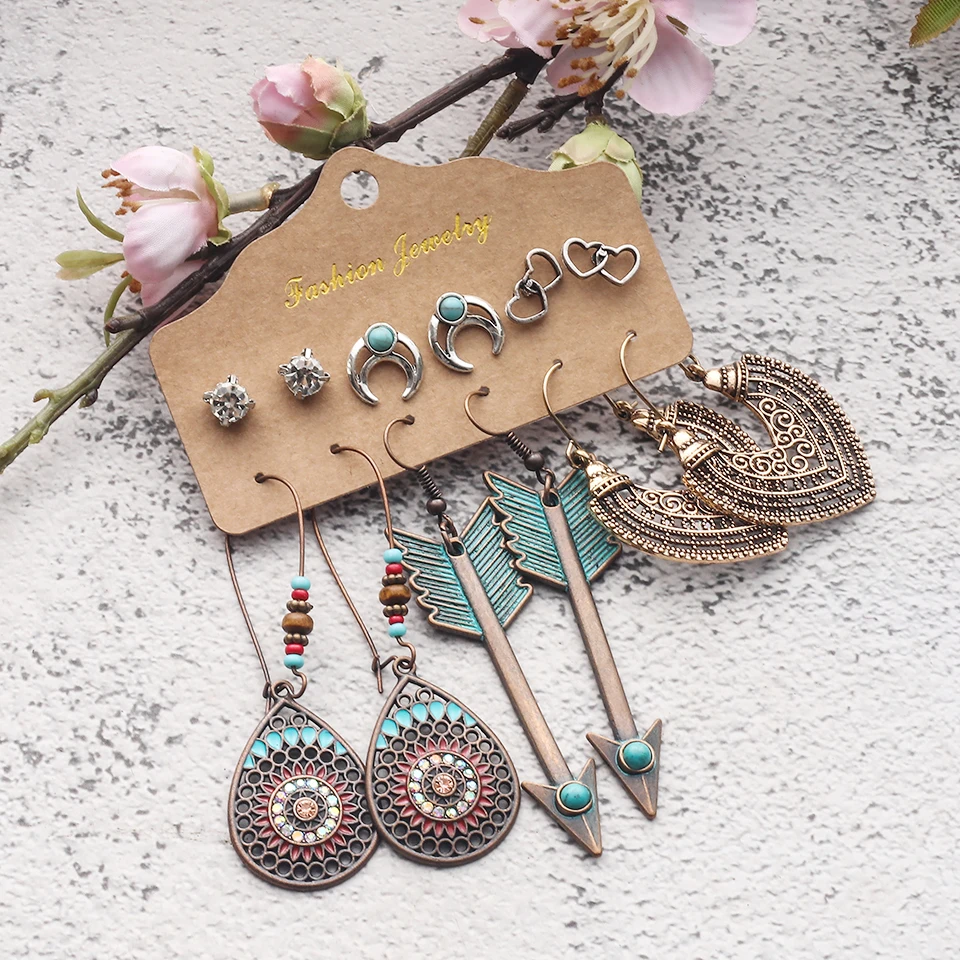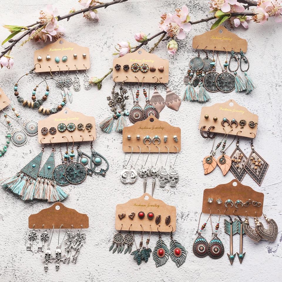 Разпряди 2020, модные женские винтажные серьги в стиле бохо, свисающие серьги, наборы ювелирных изделий, аксессуары