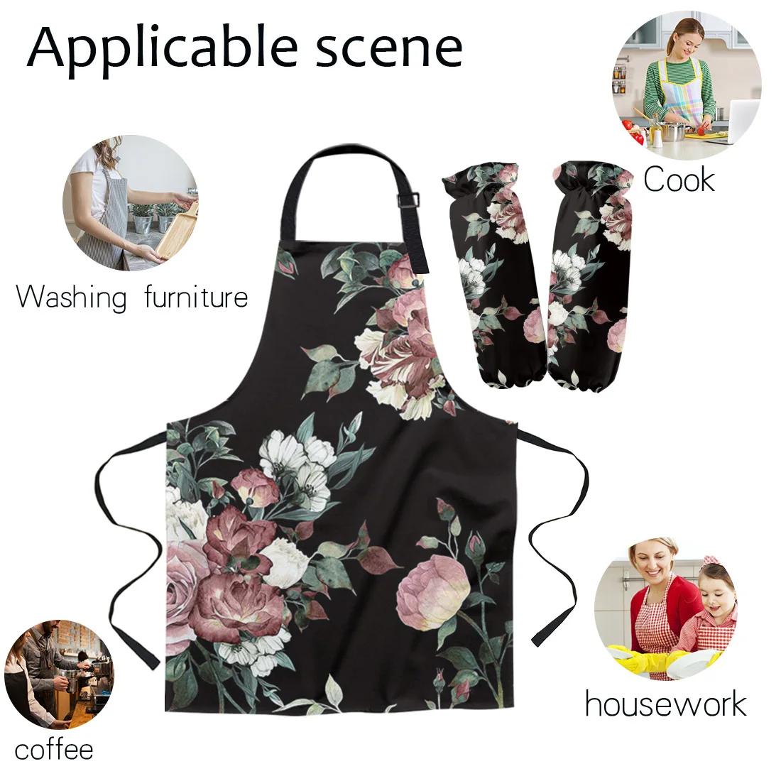 Фартук-манжета для духовки, детский нагрудник черного цвета с современным цветочным рисунком, для дома, приготовления пищи, выпечки, кофейни, уборки кухни