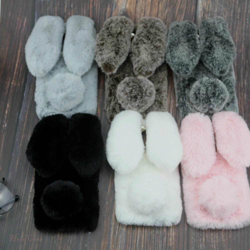 Силиконовый чехол с пушистым кроликом, плюшевый чехол для телефона ...