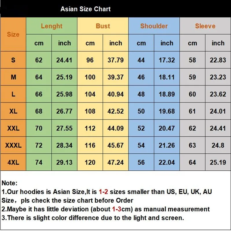Наши толстовкиАзиатский размер, Это о1-2Размер s меньше, чем размер США, ЕС, Великобритании, Австралии, пожалуйста, проверьте таблицу размеров перед заказом.