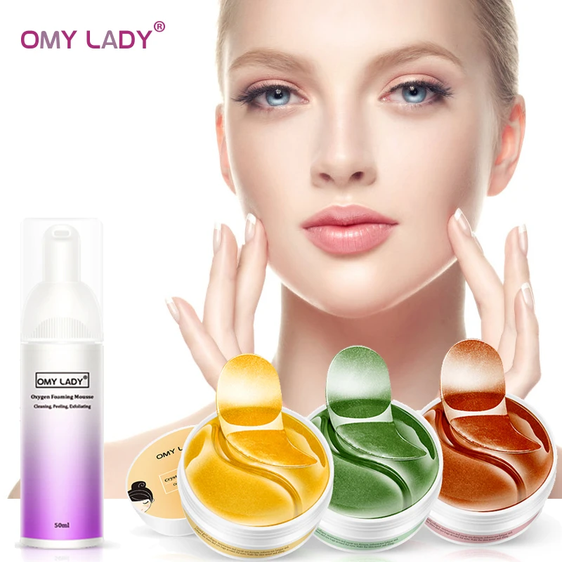 Маска-патч для глаз OMYLADY, коллаген, против морщин, темных кругов, уход, кислородный Пенящийся мусс, глубокое очищение лица очищающее средство, увлажнение