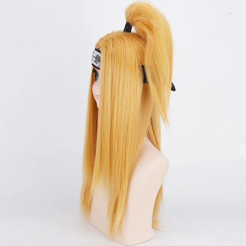 Парики для косплея «Дейдара» Akactuki, длинный золотистый термостойкий парик из синтетических волос, головной убор, повязка на головуПримечание: парик + шапочка для парика + повязка на голову