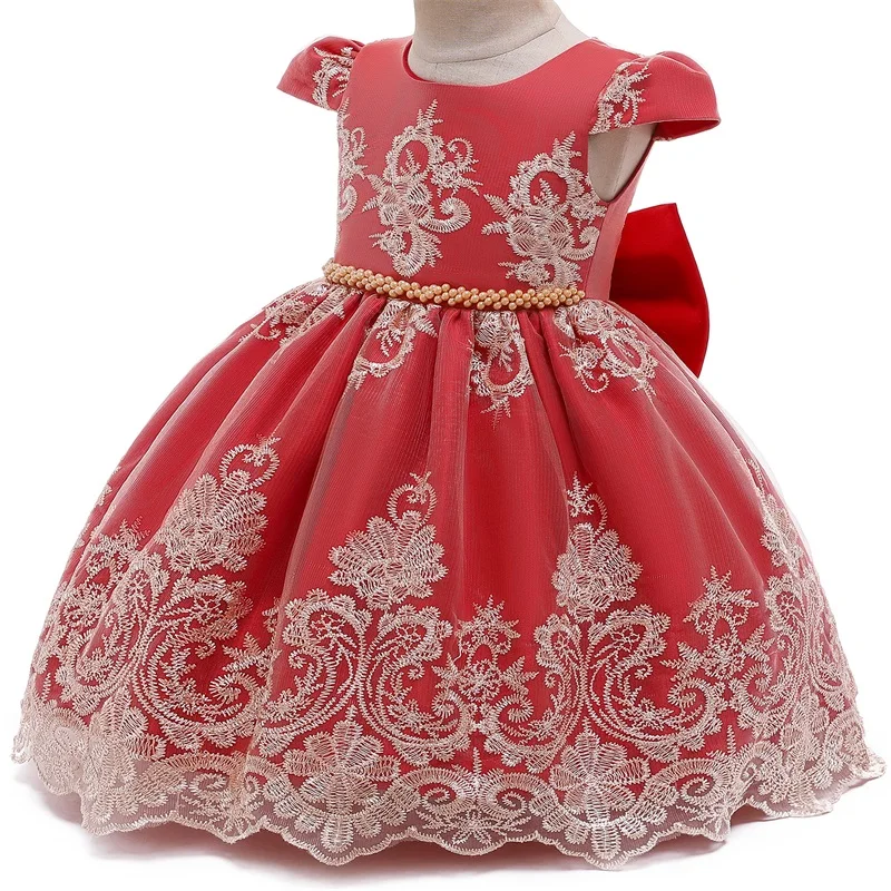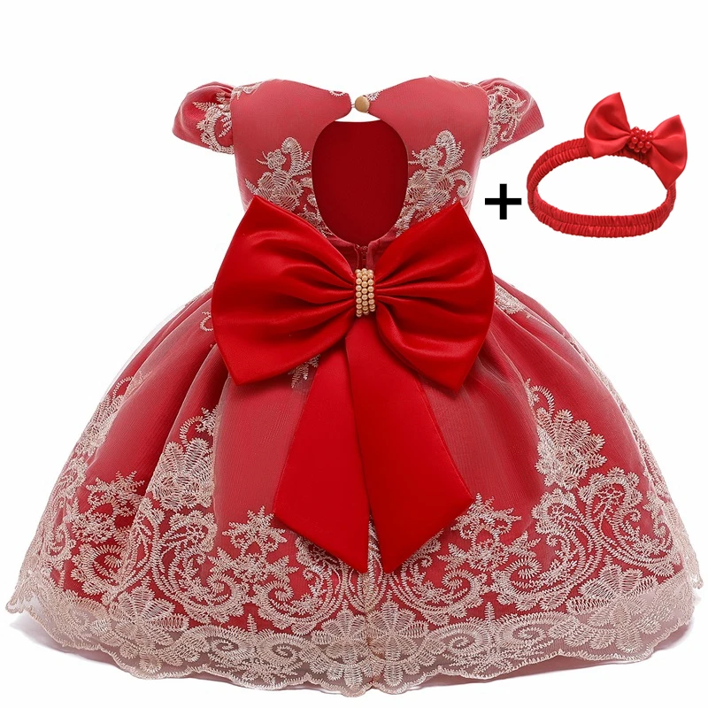 Зимнее платье для девочек на 1 год, день рождения, кружевные платья с красным бантом для девочек, детская юбка-пачка, одежда для маленьких принцесс, свадебное платье, платье