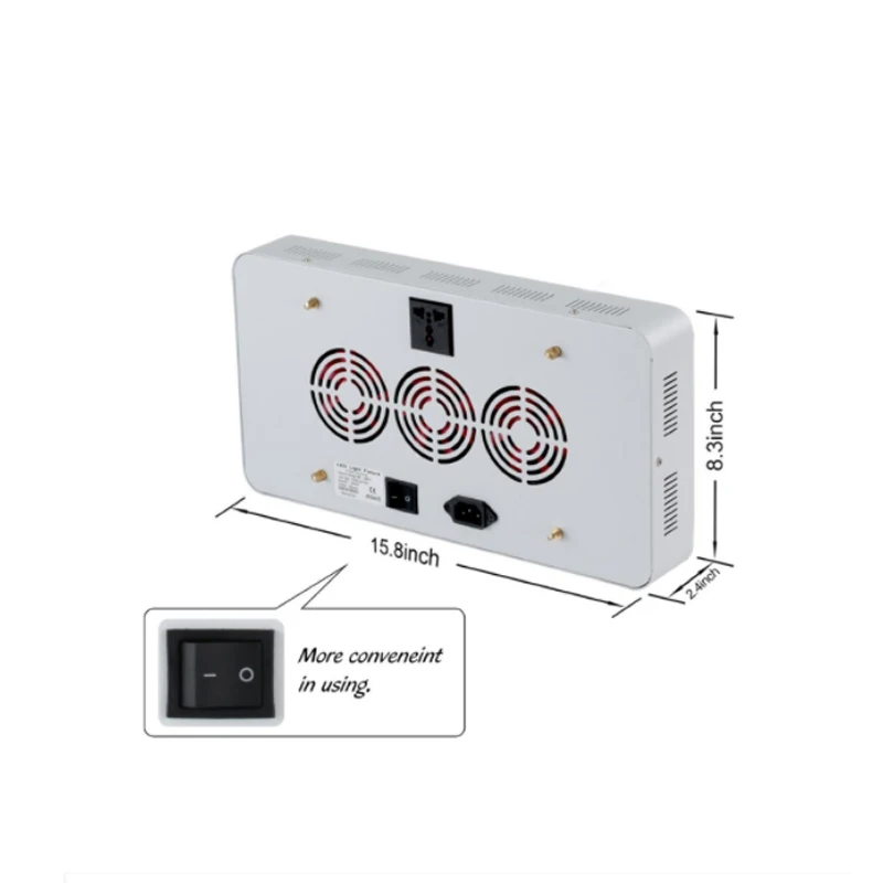 Какие растения вы можете использовать наш светодиодный светильник для выращивания растений? Он очень подходит для всех этапов роста растений и может идеально сочетаться с водной культурой и почвенной культурой. Используется для домашних садов, горшечных растений, садов, сеялки, разведения, ферм, цветочных выставок, бонсай, садов, теплиц, сеялки, разведения, ферм, выращивания теплиц, водорастворимого разведения, выращивания теплиц, культивирование трубопровода и т. Д. Полный спектр дизайна Наш спектральный дизайн прошел множество экспериментов, включая 2 пика. Научный спектр дизайна может удовлетворить светильник, требуемый каждой стадии роста растений, что делает вашу посадку более эффективной и легкой. Характеристика 1. 10-band светодиодный имеет 8 спектрами, которые могут помочь вашему растения полностью использовать свой потенциал 2. Растительность и период цветения чрезвычайно растут 3. Эта лампа может принести вам меньше тепла и обеспечить огромный выход 4. 100% высокий выход 3 Вт, лучше, чем любой светильник для выращивания с таким же Ваттом светодиодный (не включая Cree светодиодный!). 5. Срок службы наших ламп в шесть раз превышает срок службы HID ламп 6. Экономия 50%-70% затрат на энергию 7. Встроенный вентилятор охлаждения, другие системы охлаждения не требуются 8. Нет балласта или отражателя 9. Тепло на ощупь-не будет сжигать растения 10. No HID toxin-выбор зеленых производителей X4 1200W светодиодный светильник для выращивания X4 1200w Светодиодная лампа для выращивания растений Подходит для периода распространения растений и периода цветения. Светодиодный источник питания: 1200 Вт Количество светодиодов: 4x300 Вт Фактическое потребление энергии: энергосбережение, потребляет только 150 Вт-200 Вт Цвет: белый Оптический спектр: 410nm, 430 ~ 440nm, 450 ~ 475nm 620 ~ 630nm, 650 ~ 660nm, 730nm, 3500K и 6000k Материал поверхности: анти-Глинозем Размер продукта: 330*185*85 мм (13x7,3x3,35 дюйм (ов) Вес нетто: 2,9 кг Светодиодный светильник-угол излучения: 120 ° Напряжение: AC85 ~ 265 в Срок службы: 50000 часов X5 1500 Вт Светодиодная лампа для выращивания растений X5 1500 Вт Светодиодная лампа для выращивания растений Подходит для периода распространения растений и периода цветения. Светодиодный источник питания: 1500 Вт Количество светодиодов: 5 шт. x 300 Вт Фактическое потребление энергии: энергосбережение, потребляет только около 200 Вт-250 Вт Цвет: белый Оптический спектр: 410nm, 430 ~ 440nm, 450 ~ 475nm 620 ~ 630nm, 650 ~ 660nm, 730nm, 3500K и 6000k Материал поверхности: анти-Глинозем Размер продукта: 330*185*85 мм (13x7,3x3,35 дюйм (ов) Вес нетто: 3,2 кг Светодиодный светильник-угол излучения: 120 ° Напряжение: AC85 ~ 265 в Срок службы: 50000 часов X6 1800W Светодиодный светильник для выращивания X6 1800w Светодиодный светильник для выращивания Подходит для периода распространения растений и периода цветения. Светодиодный источник питания: 1800 Вт Количество светодиодов: 6x300 Вт Фактическое потребление энергии: энергосбережение, потребляет только около 250 Вт-300 Вт Цвет: белый Оптический спектр: 410nm, 430 ~ 440nm, 450 ~ 475nm 620 ~ 630nm, 650 ~ 660nm, 730nm, 3500K и 6000k Материал поверхности: анти-Глинозем Размер продукта: 402*213*85 мм (14x7,3x3,35 дюйм (ов) Вес нетто: 4,2 кг Светодиодный светильник-угол излучения: 120 ° Напряжение: AC85 ~ 265 в Срок службы: 50000 часов