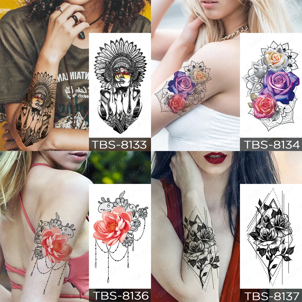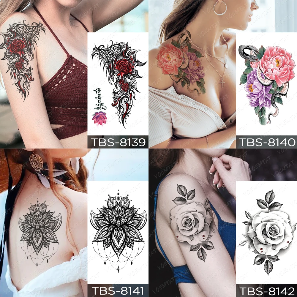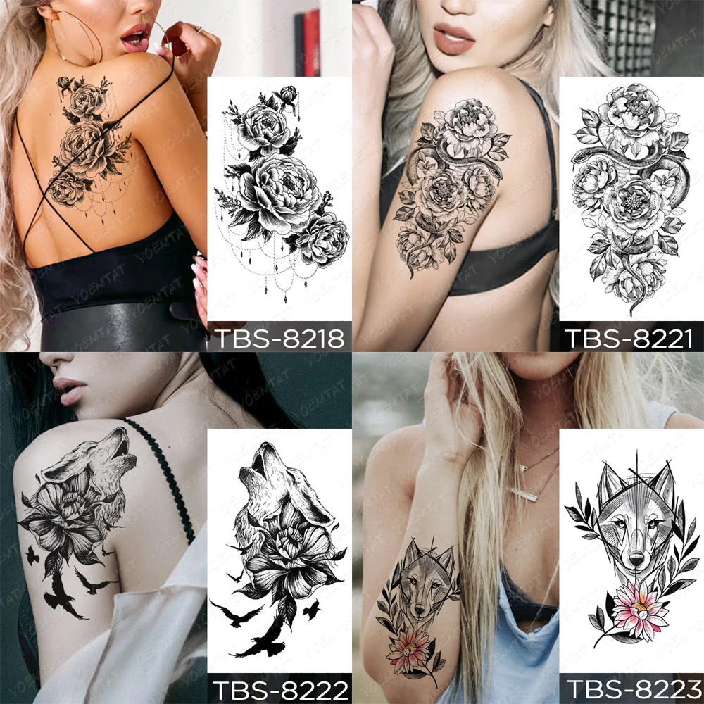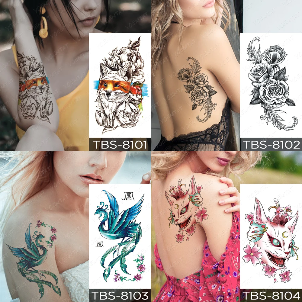 Водостойкая временная татуировка наклейка Дракон Роза Кот Единорог Ловец снов флеш-татуировки ведьма змея боди-арт на руку поддельные татуировки для женщин