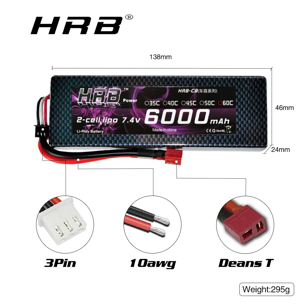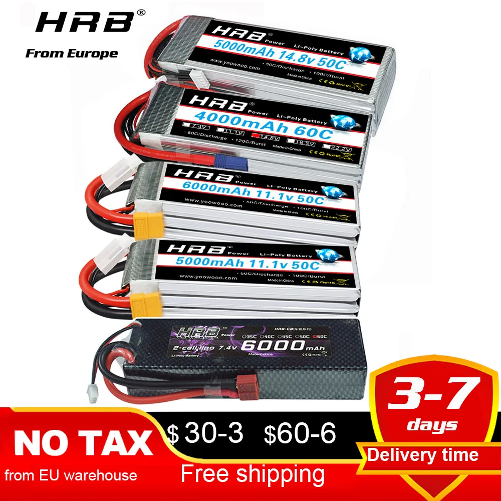 Аккумулятор HRB 6S 4S, 3S, 11,1 В, 14,8 в, 3300 мА ч, 4000 мА ч, 5000 мА ч, 6000 мА ч, Разъем XT60 Deans для радиоуправляемого автомобиля, грузовика, дрона, лодки