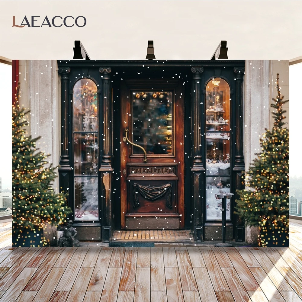 Laeacco Рождественская елка винтажный магазин витрина снег фотографии фоны Фотографические фоны зимний фотосессия Фотостудия
