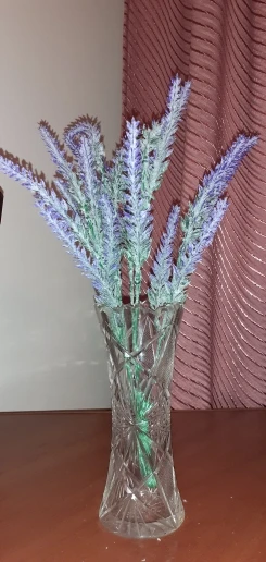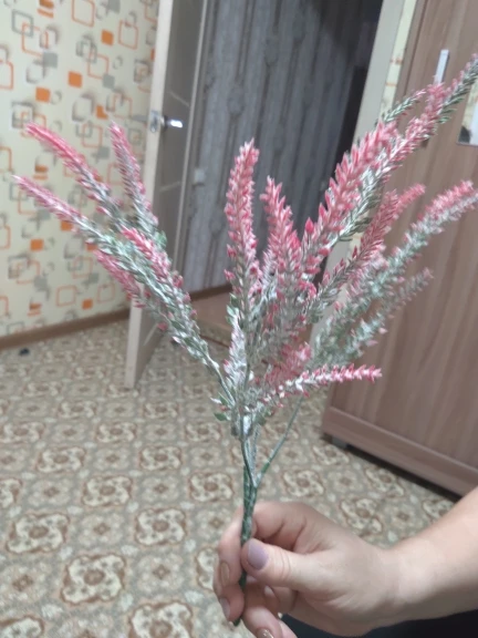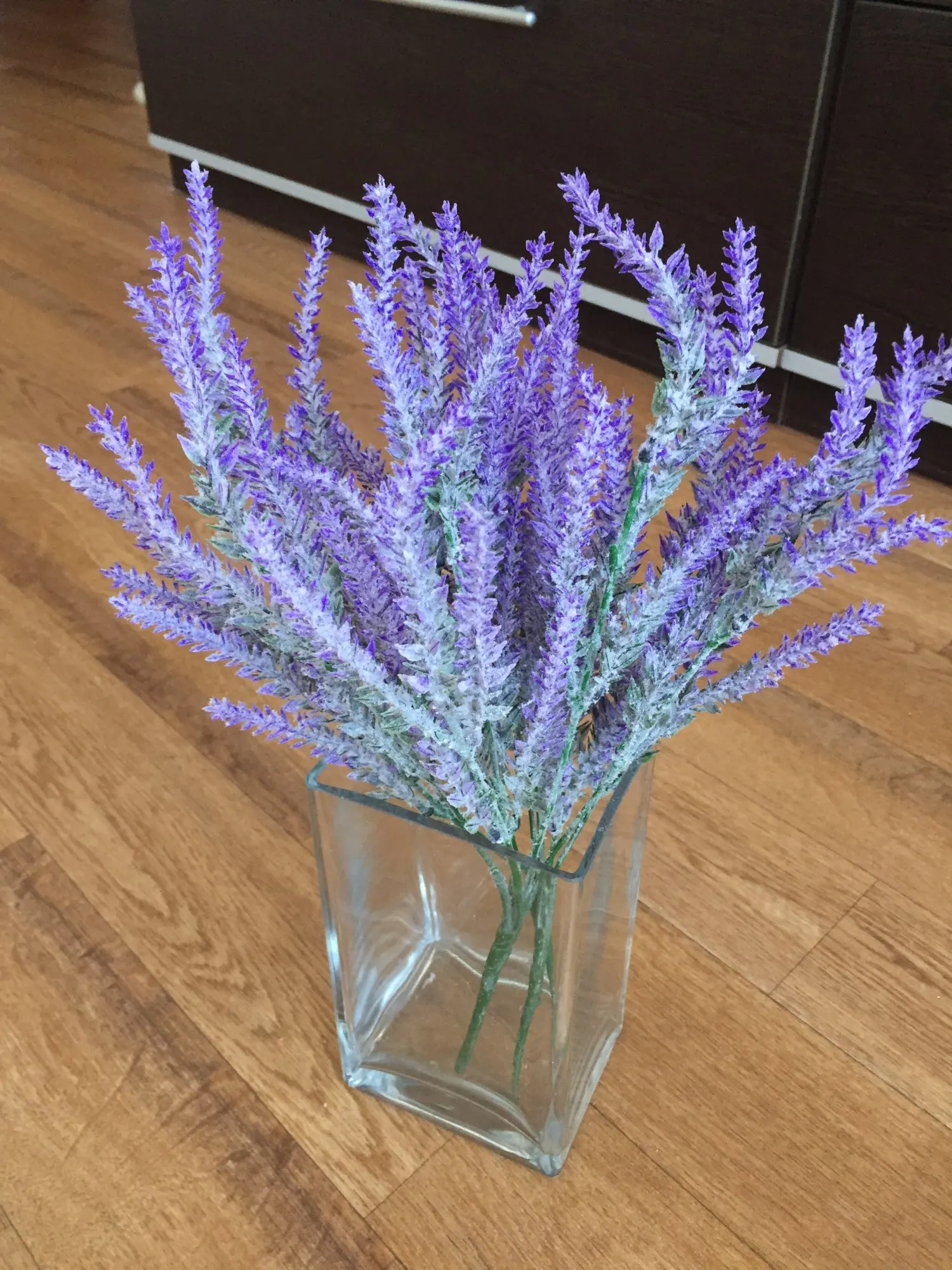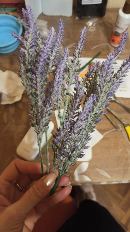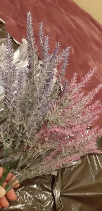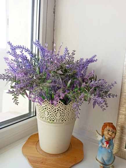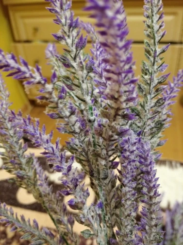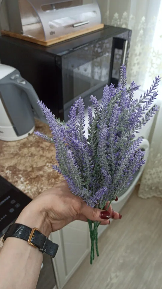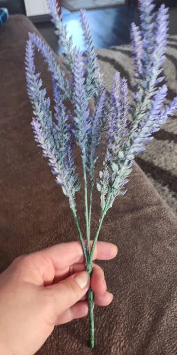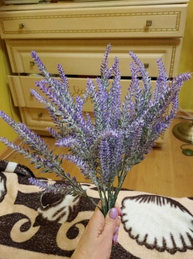 Лаванда соответствует описанию, небольшой запах пластмассы, белое напыление слегка осыпается, но придает реалистичности, особенно если на смотреть на цветы в упор. В горшочке 4 веточки, думала в каждый по две, но оказалось маловато. Придется ещё заказать.