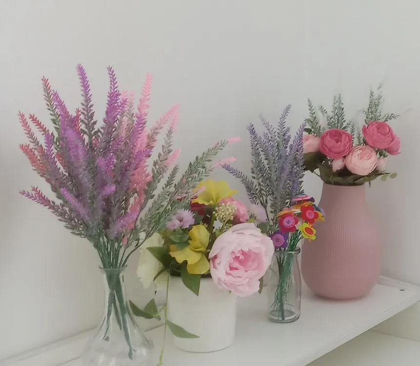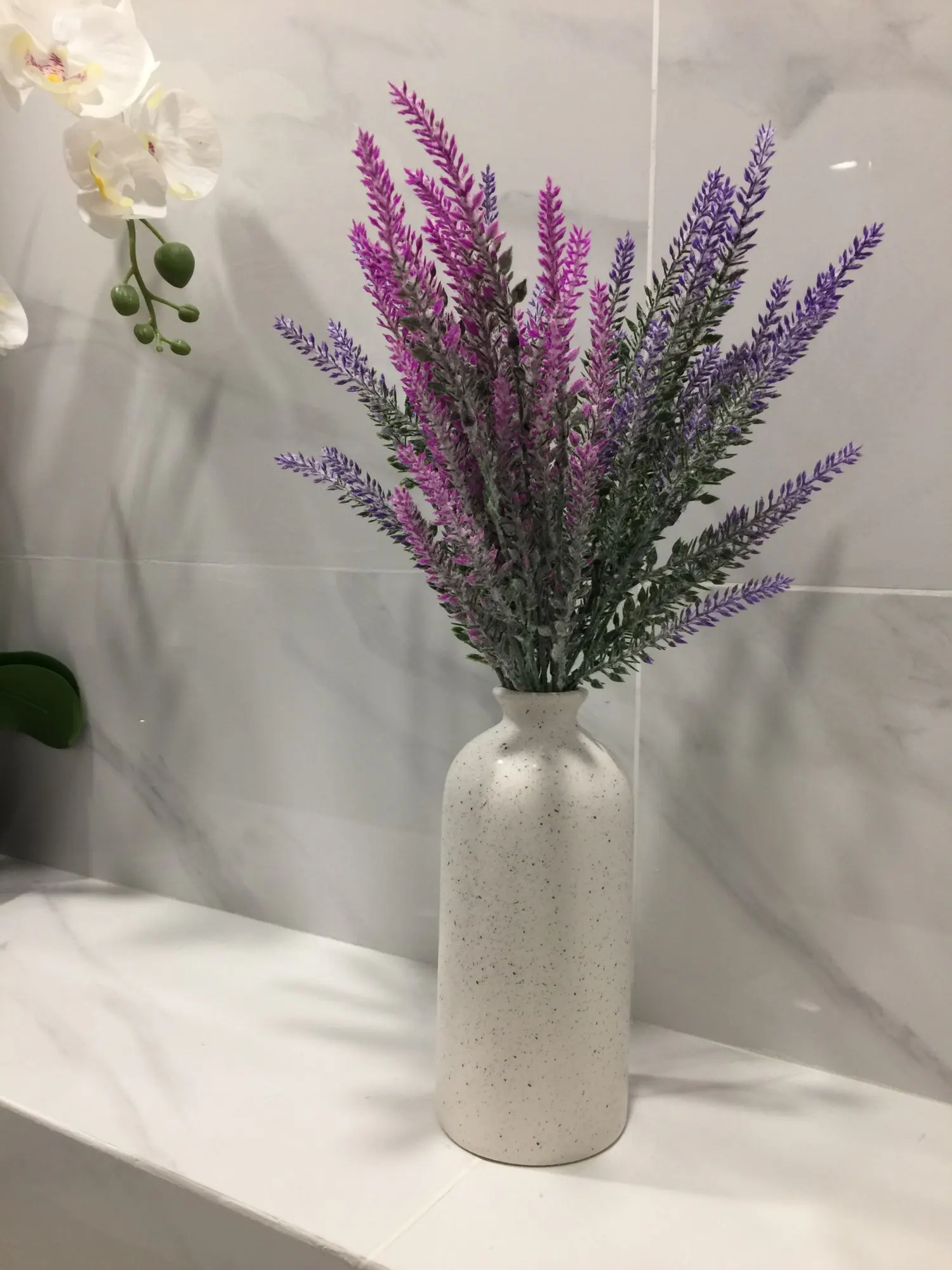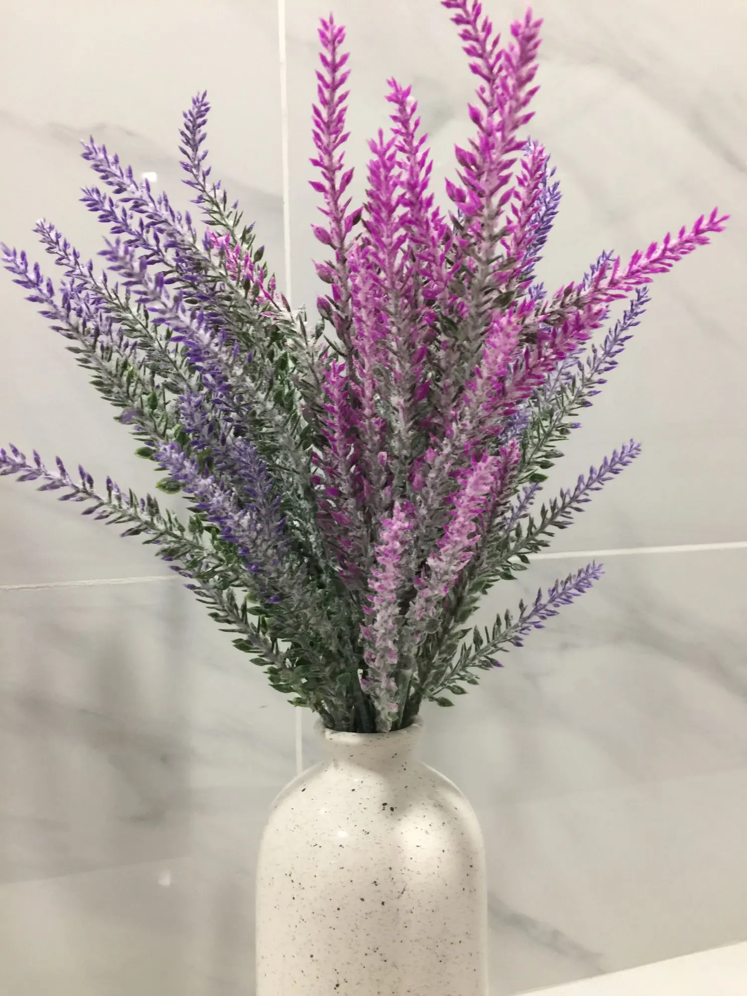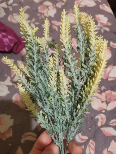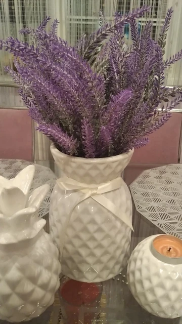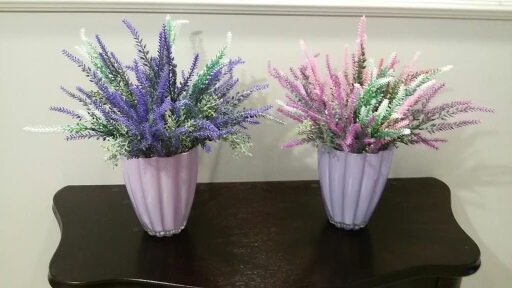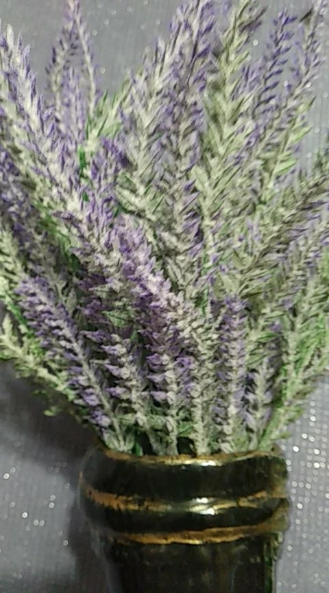 Лаванда соответствует описанию, небольшой запах пластмассы, белое напыление слегка осыпается, но придает реалистичности, особенно если на смотреть на цветы в упор. В горшочке 4 веточки, думала в каждый по две, но оказалось маловато. Придется ещё заказать.